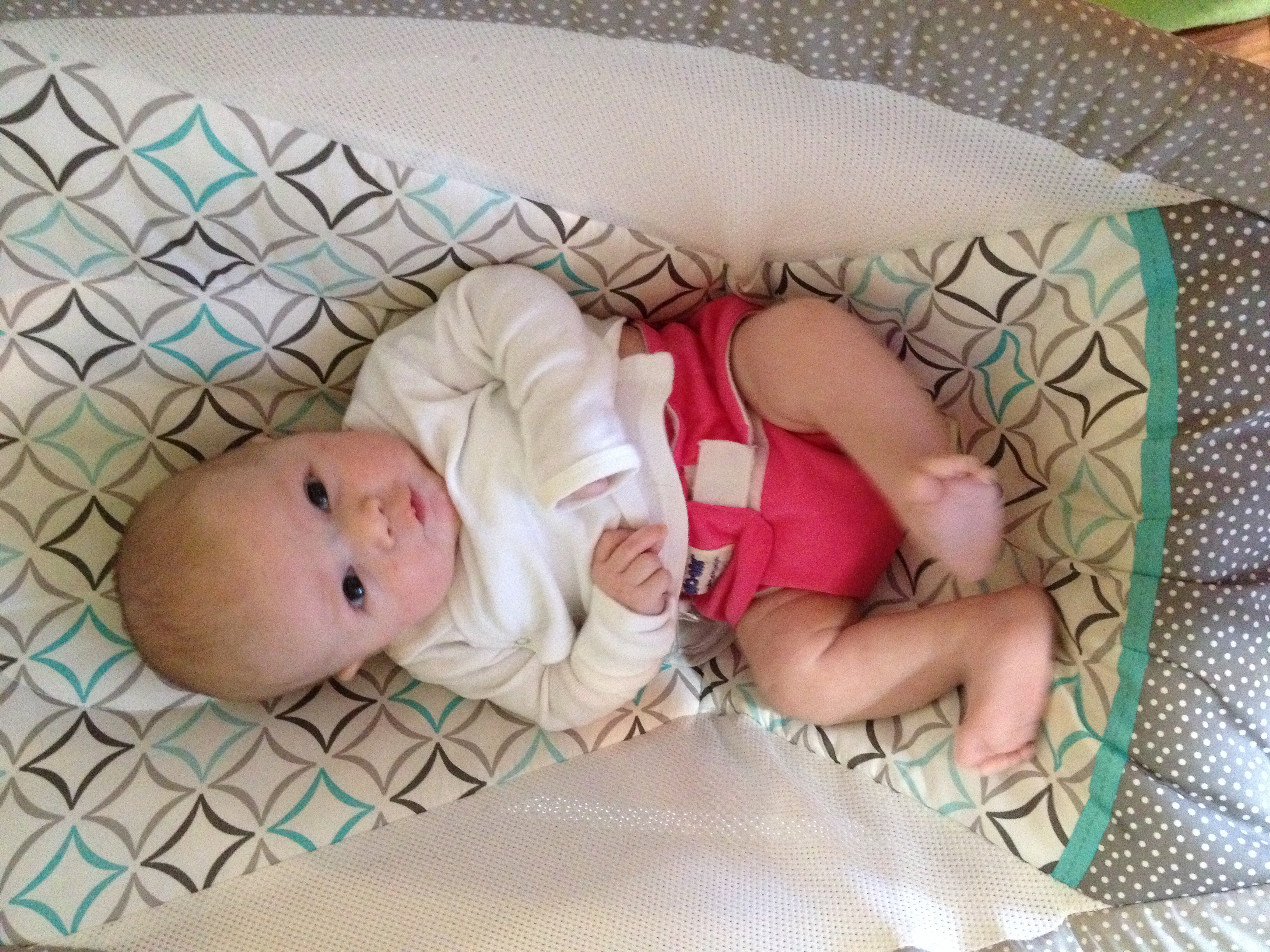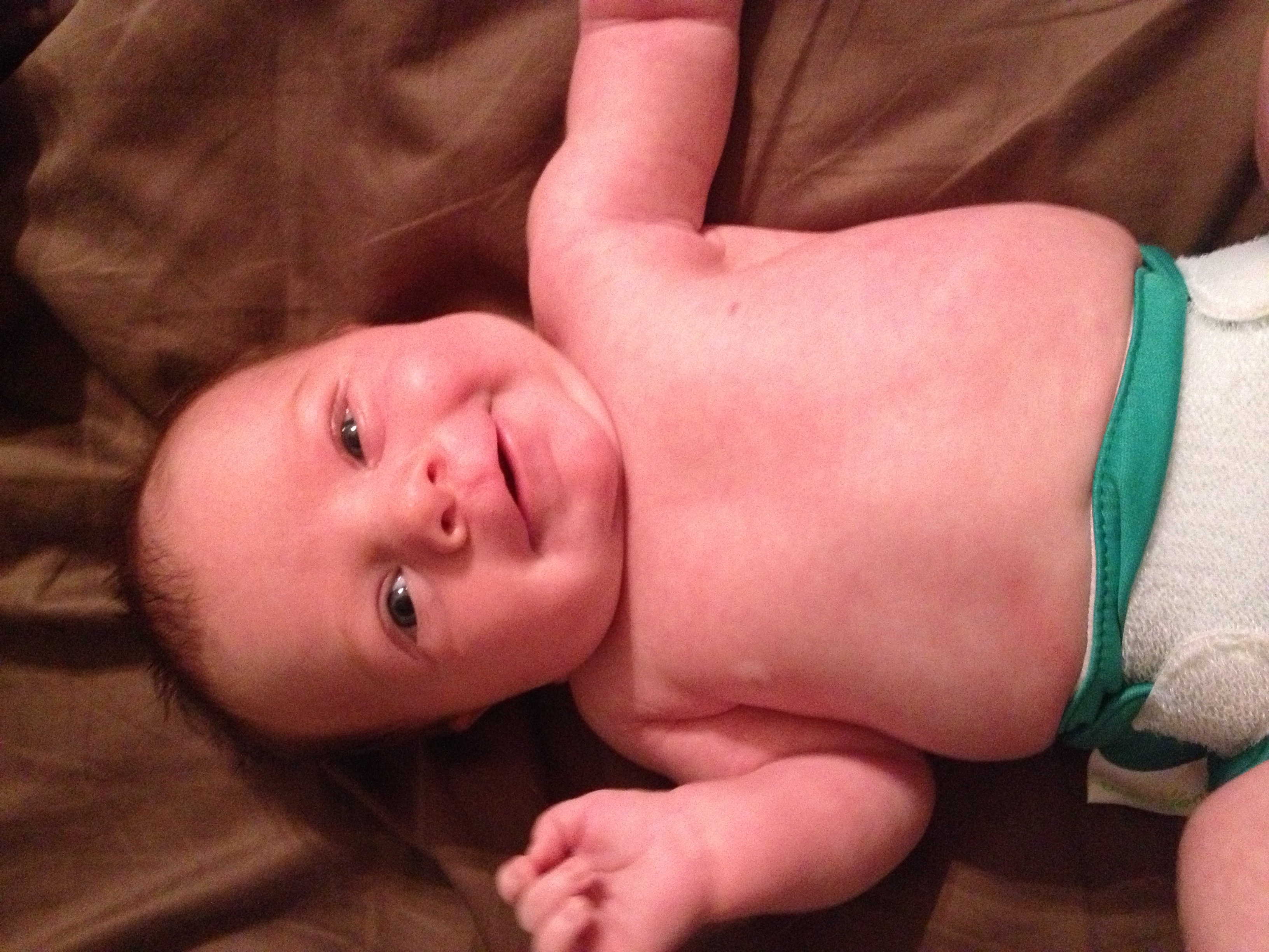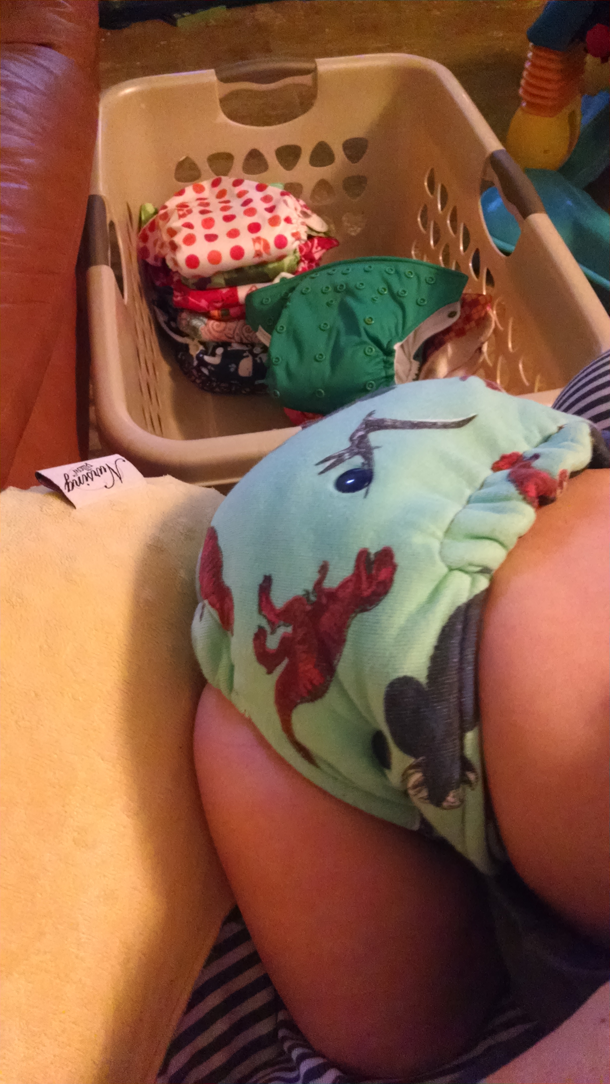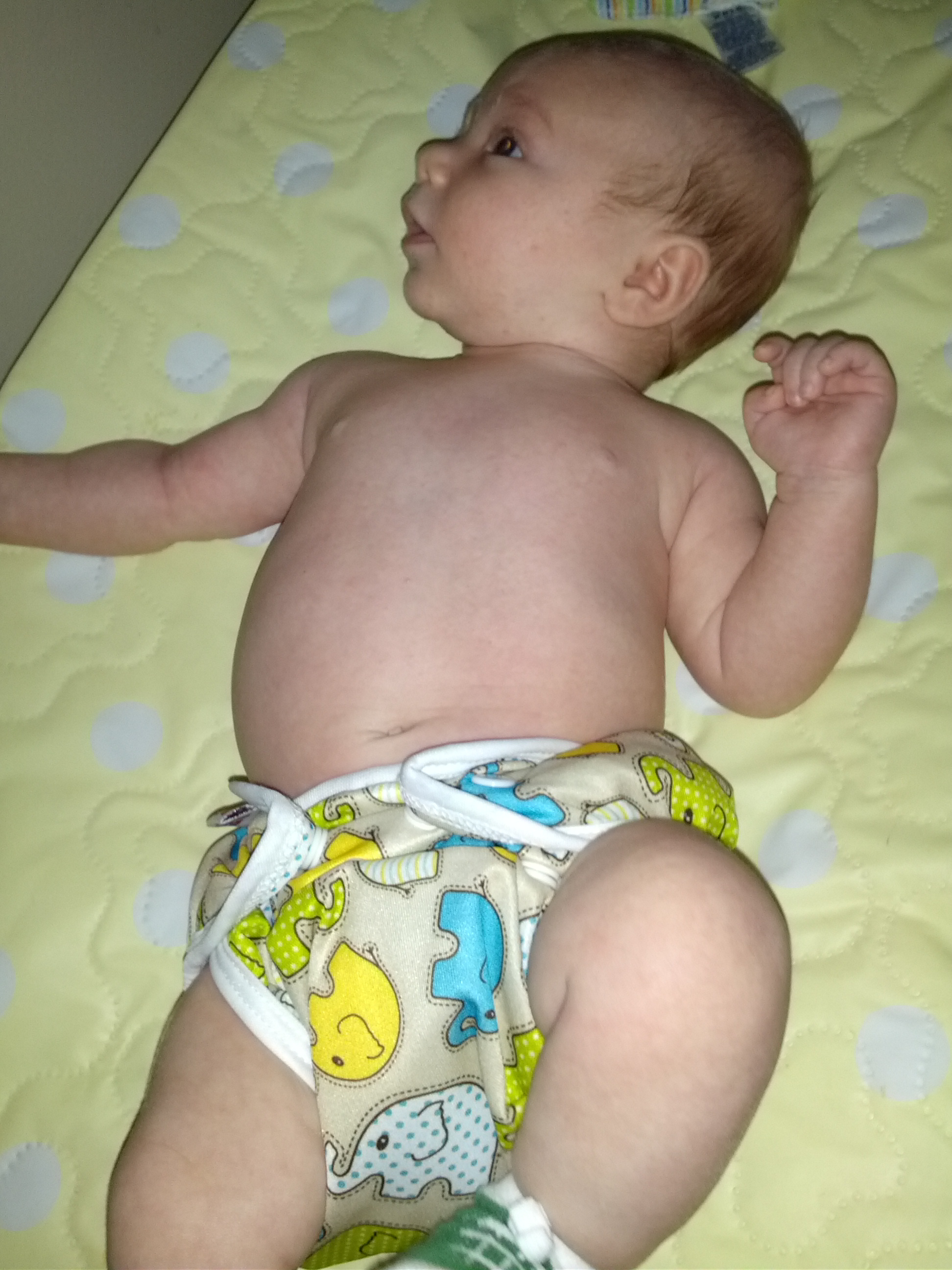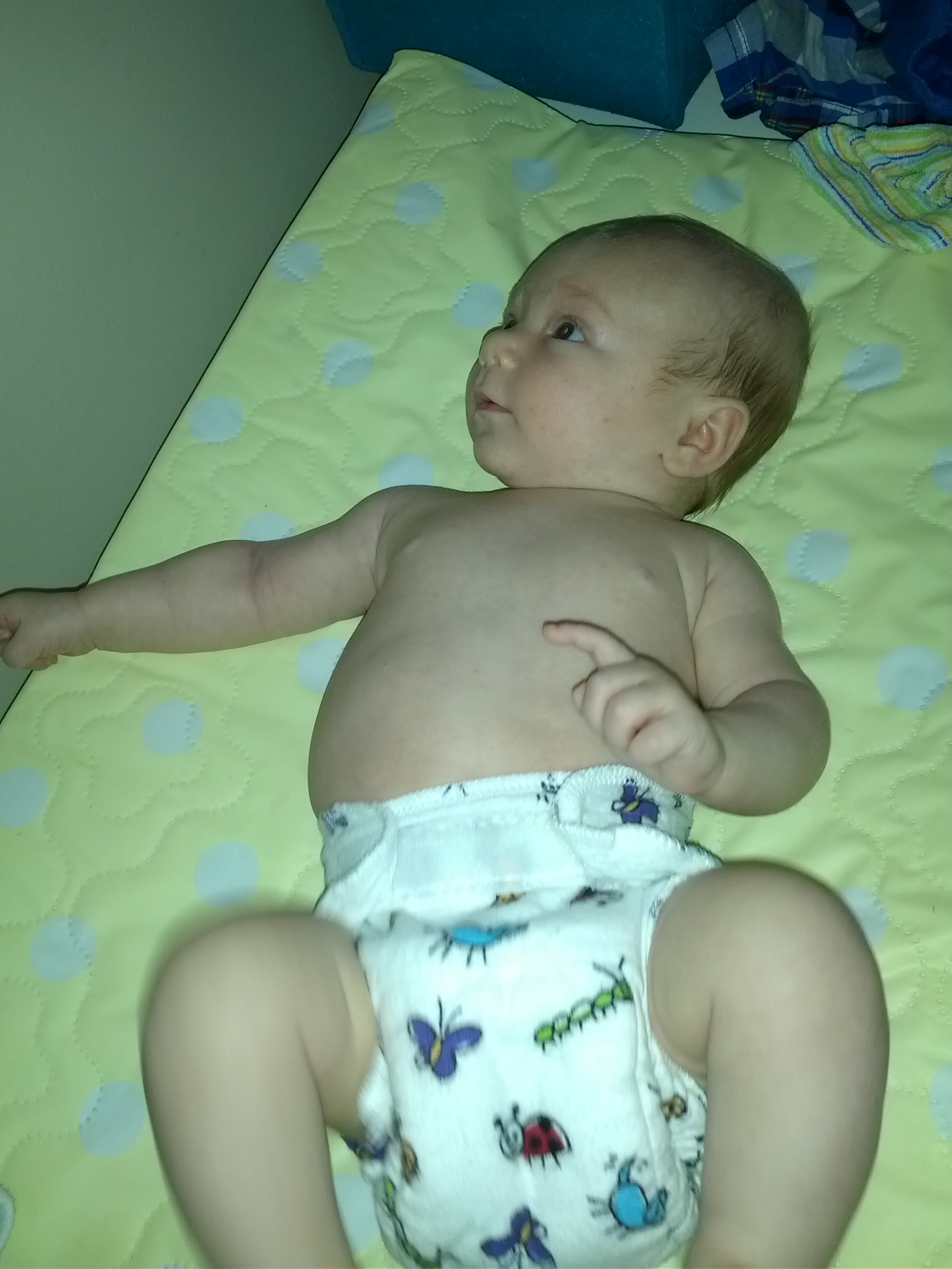 Making faces at me in her Baby Beehinds Magicall. I have 2 of these in small that I impulse bought in a FB group when I first started, and I LOVE them!