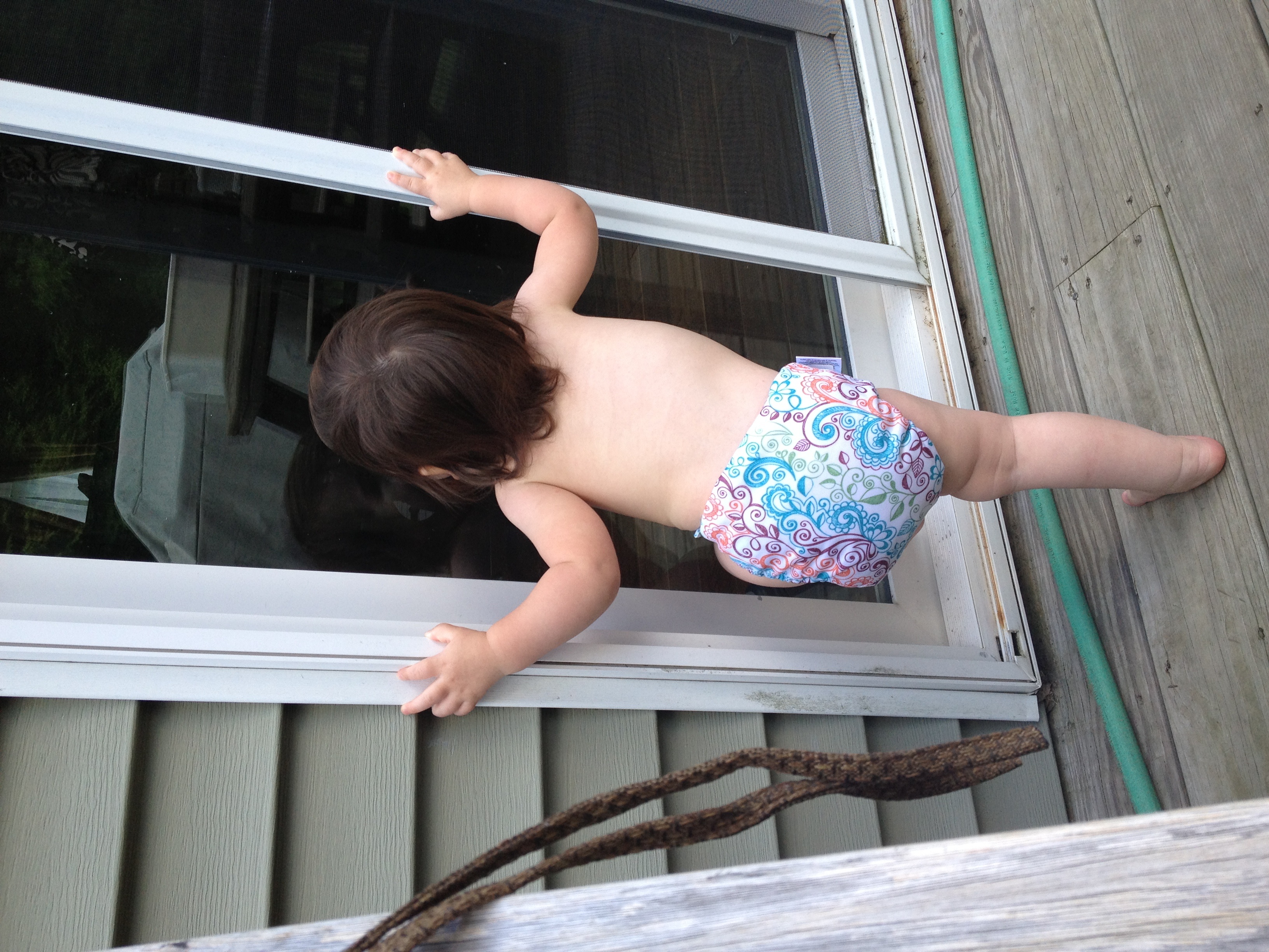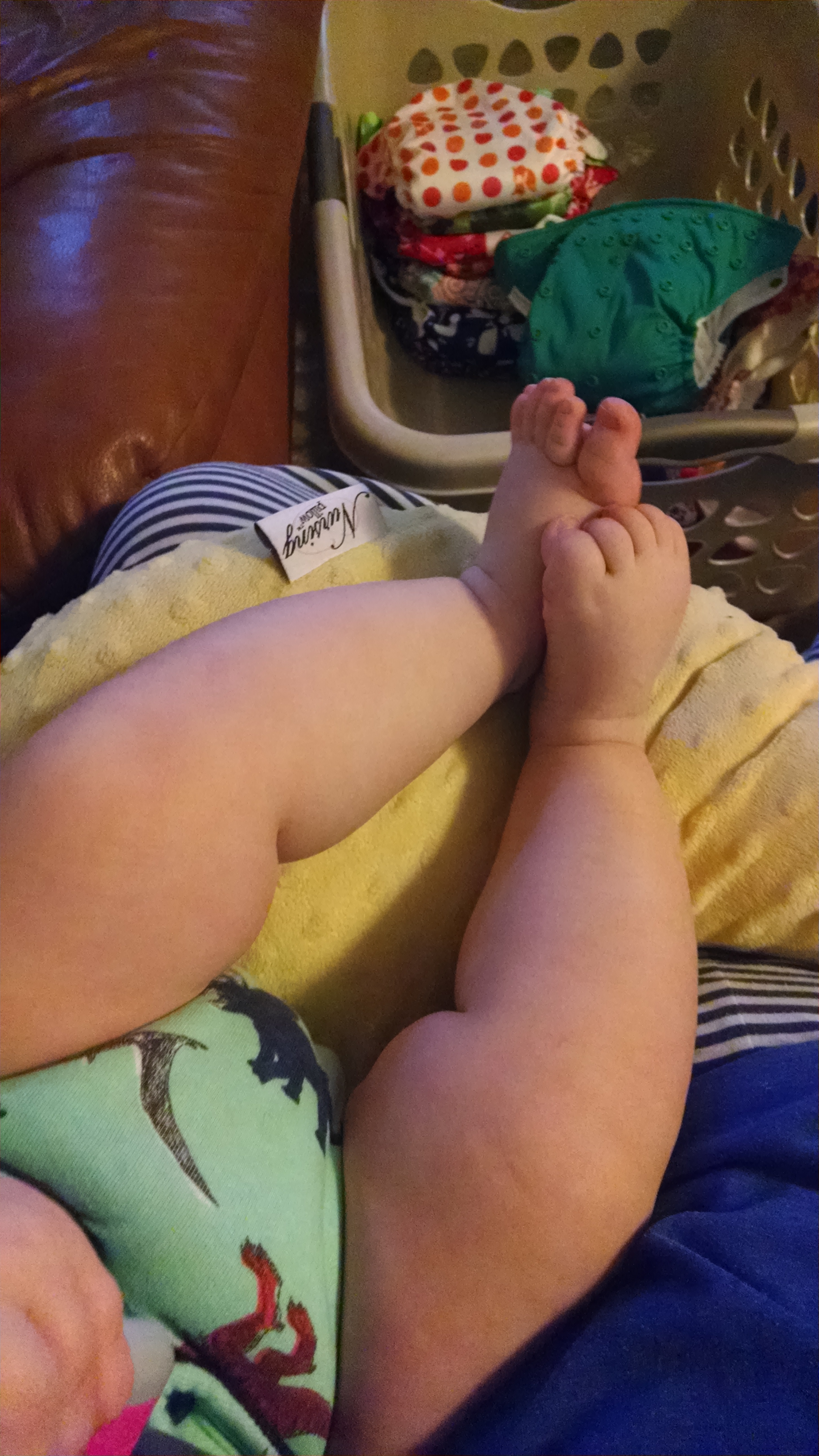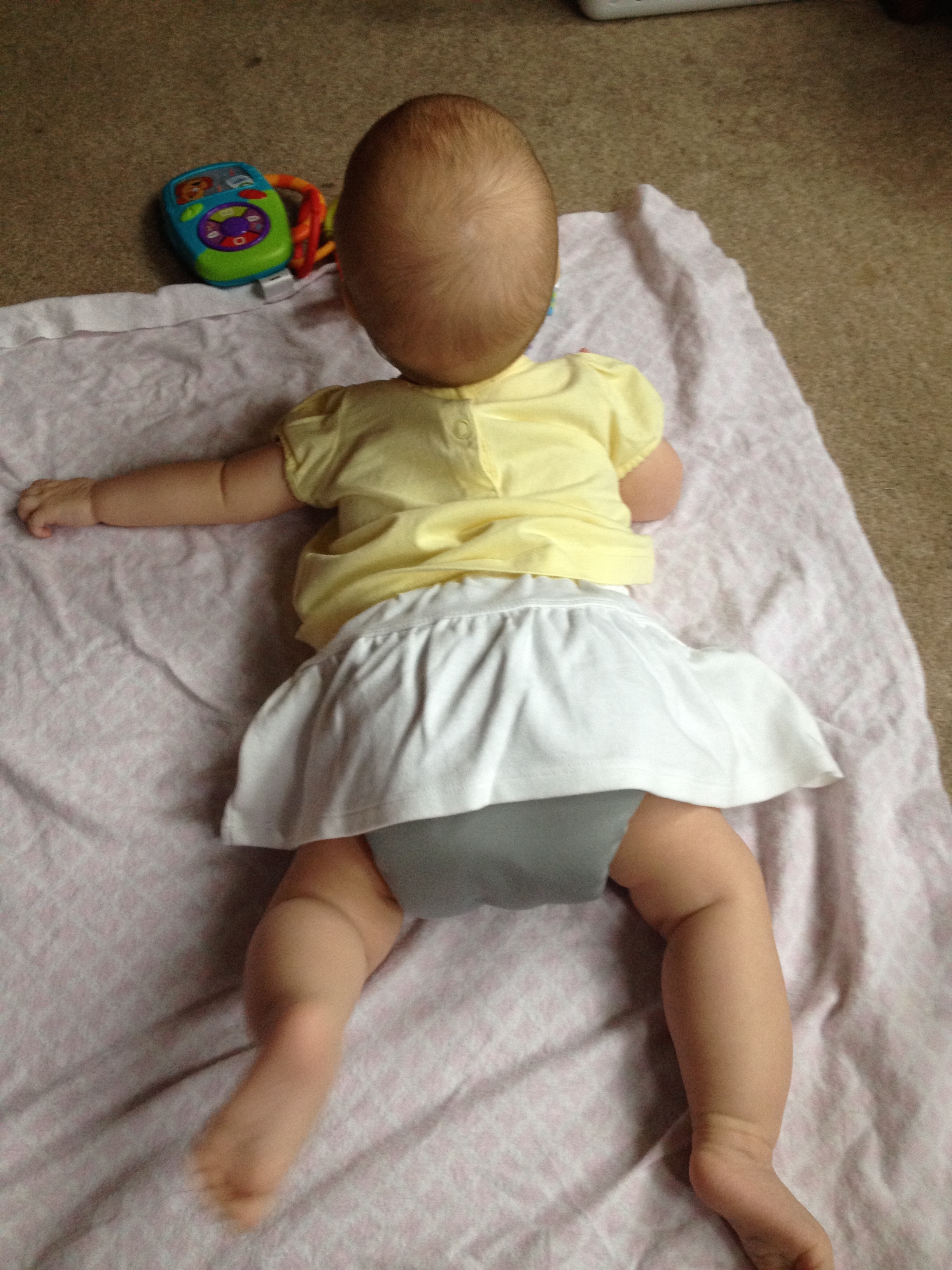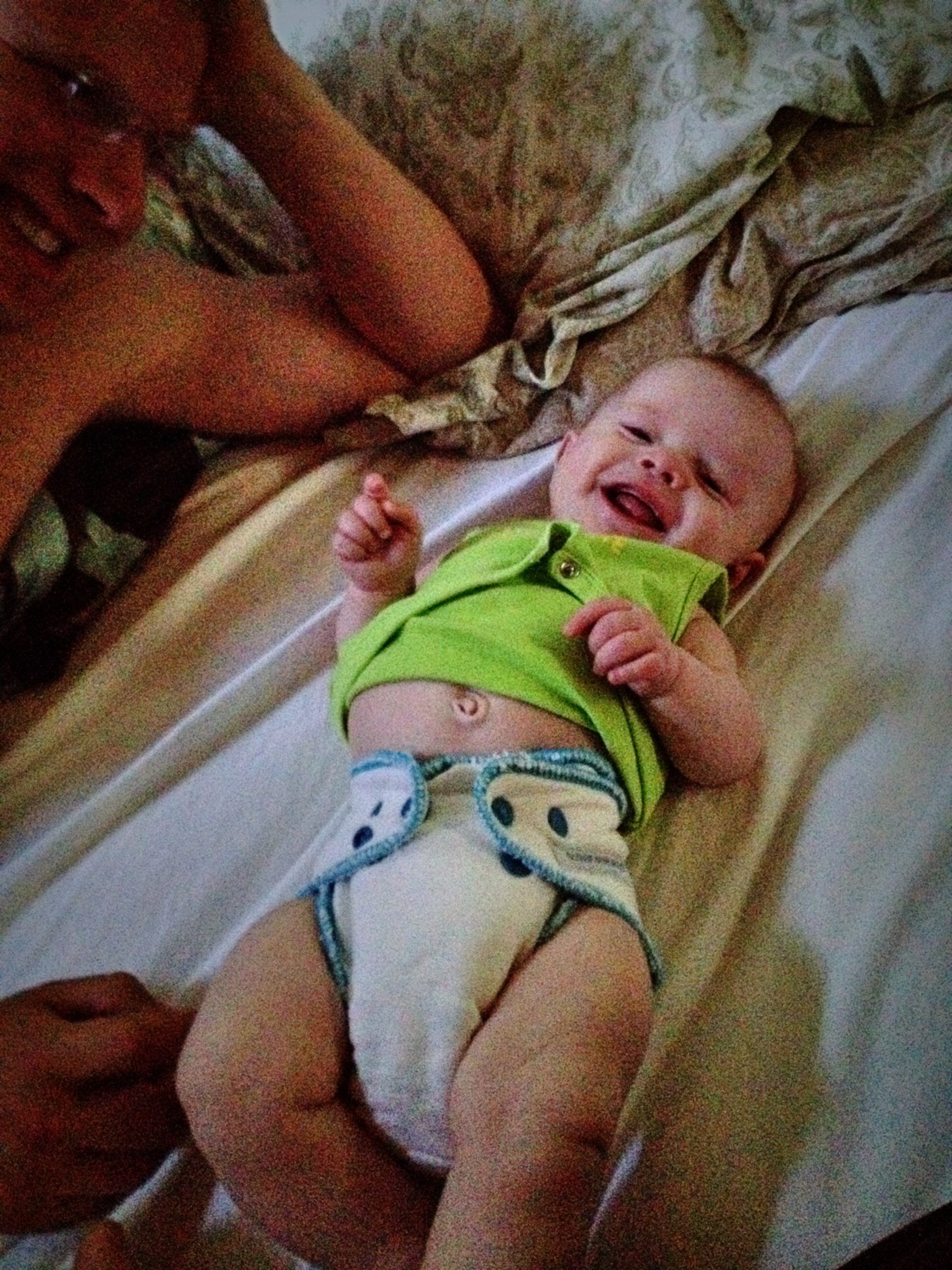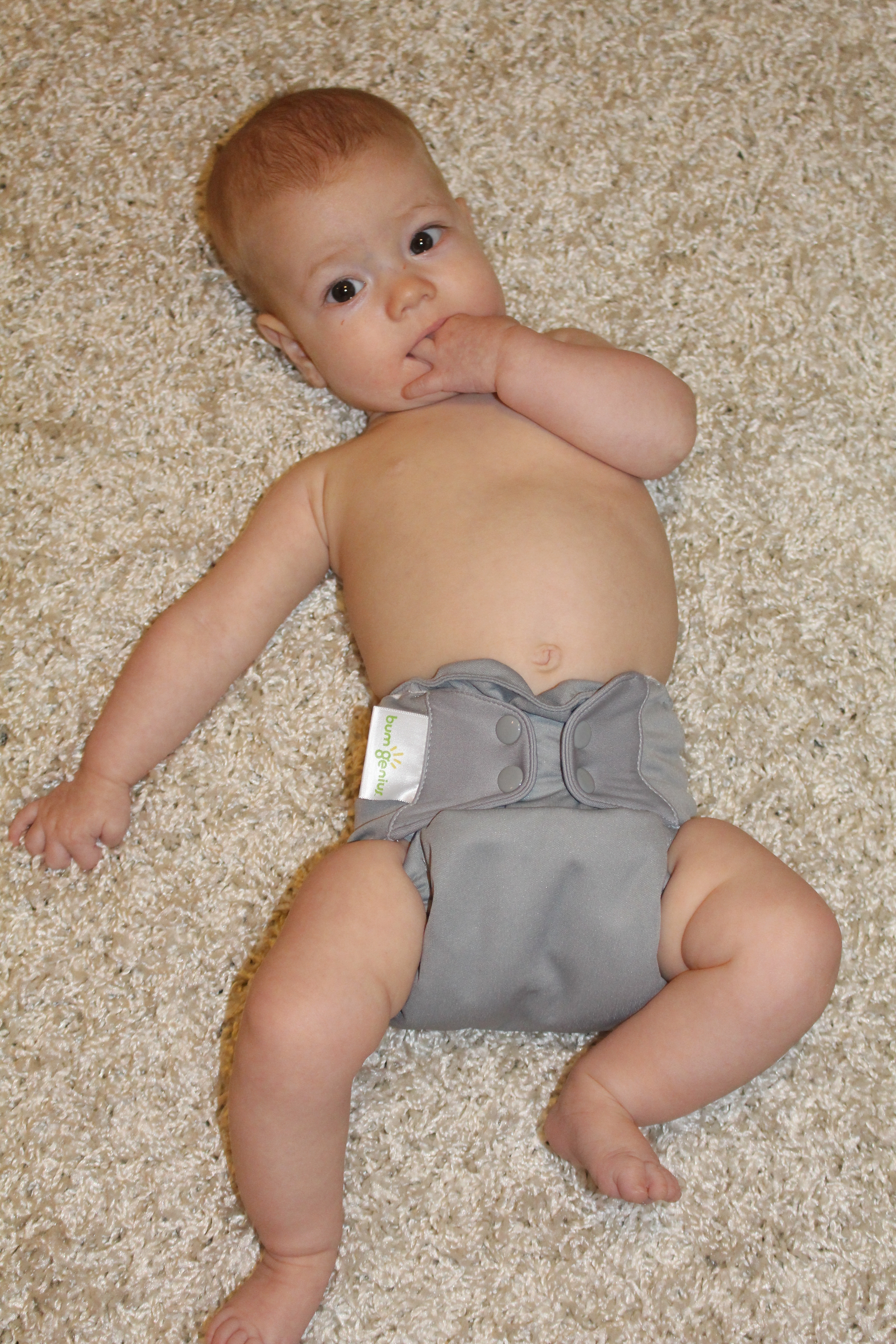 Making faces at me in her Baby Beehinds Magicall. I have 2 of these in small that I impulse bought in a FB group when I first started, and I LOVE them!