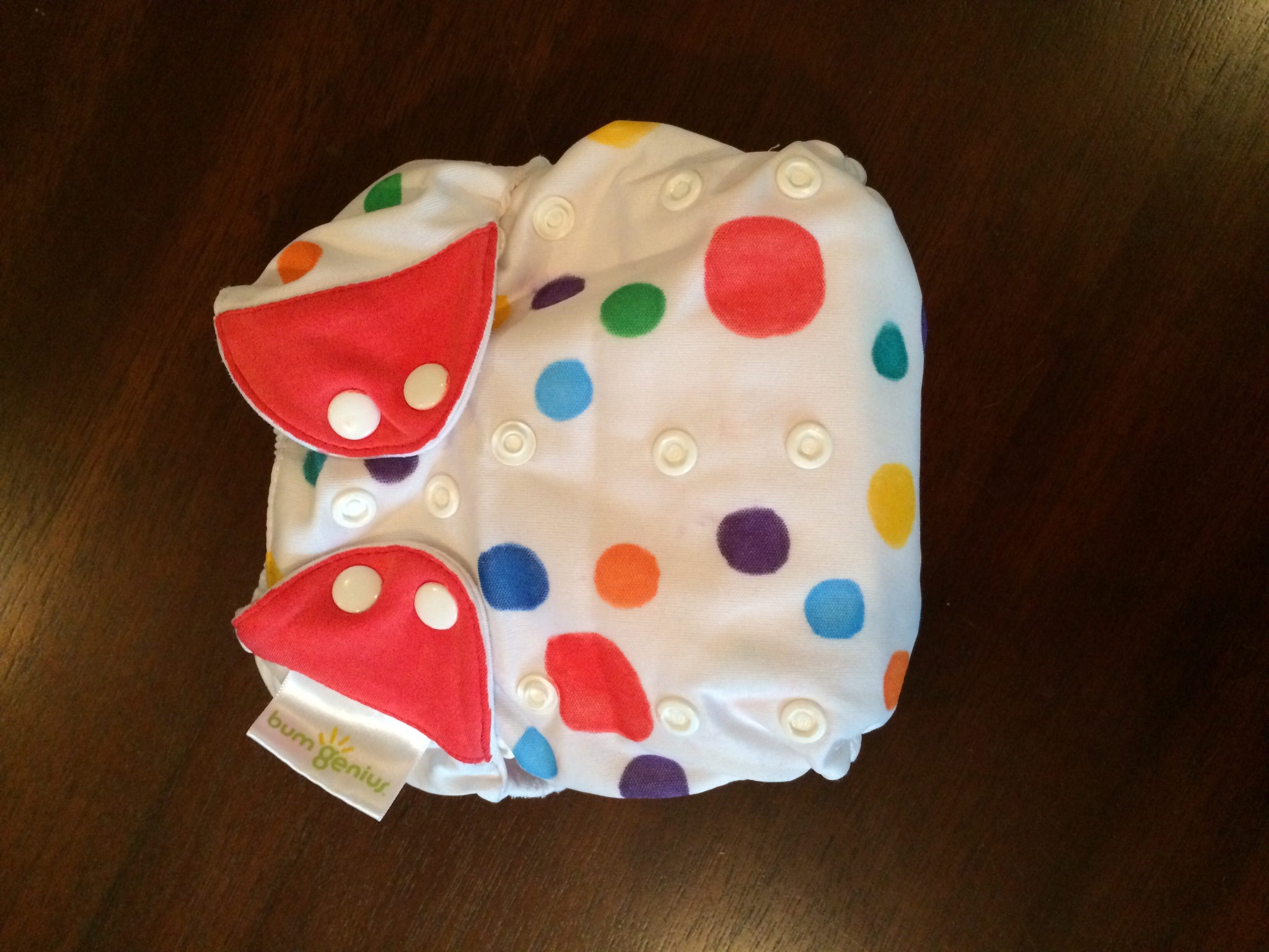 Ok, I'm totally going to AW it up today! First up, E in a tots bots borrowed from a friend. She's too clever for aplix though, so I'm trying it on P next. Second is P, giving mommy a grin in a BG hummingbird. Third and fourth I am AWing my BFF's fabric marker skills with a hand drawn tie dye and polka dots in white BGs. This entire post is brought to you by my BFF. She kicks ass.