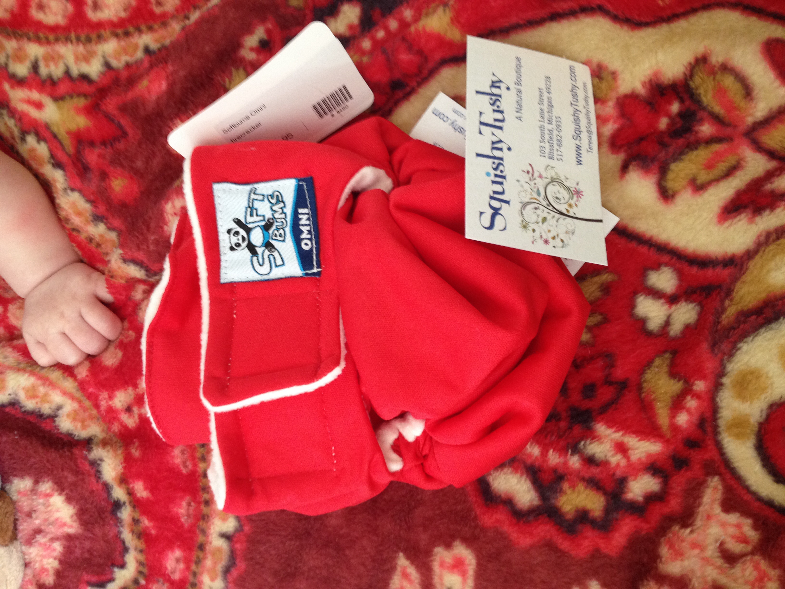 Ours isn't very exciting today. Getting ready for bed with Daddy in her new S'bish. Oh I guess I did find a new discontinued Softbum print at retail I took a pic of too!
