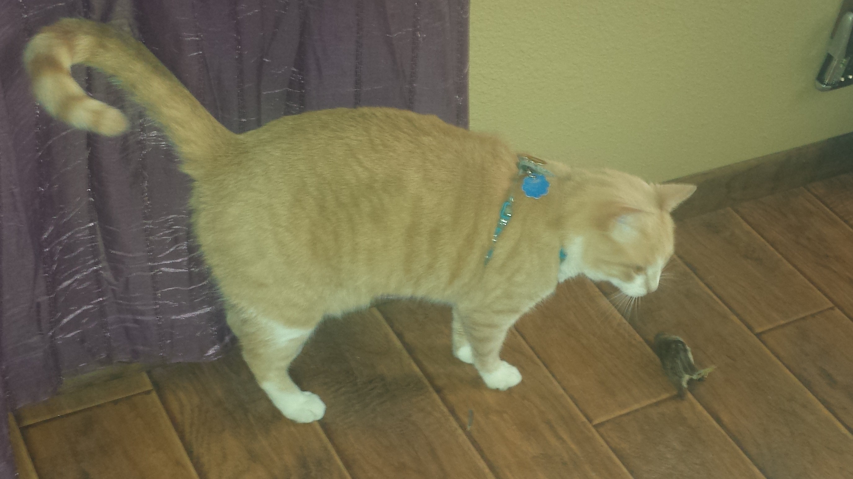 WTF cat not only are you needy lately, but you cannot just kill things for your own entertainment and then bring them into the house to bat around on the floor. It's gross and I really didn't want to barefoot step on a dead bird in my hallway.