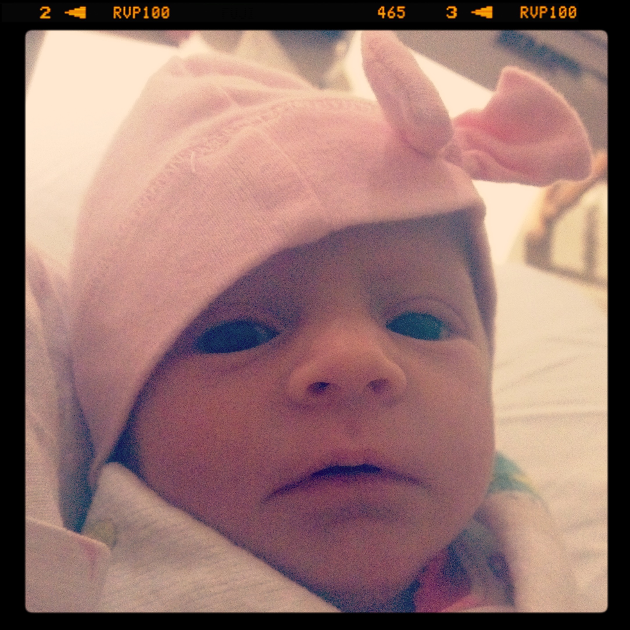 The smiling pic is Harper and the incubator pic is Noah ~ look at his little ear muffs for flight.  And the third pic is Harper playing dress up.