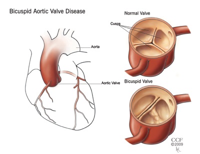 So you should have 3 valves in the aorta. Having 2 isn't a real huge issue persay. The 2 valves can be indicative of another connective tissue disease, or it could be a fluke.