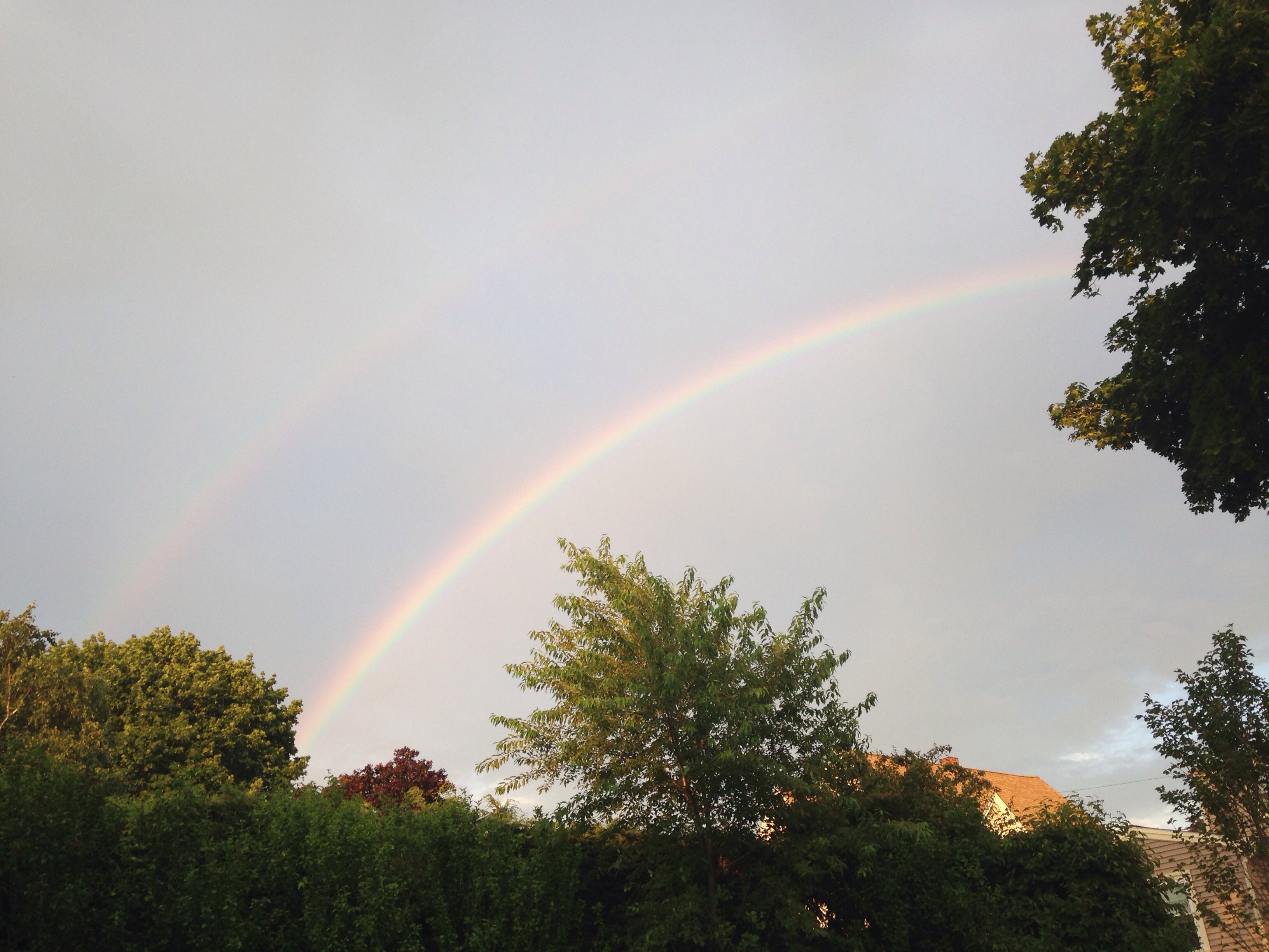 I love when I catch a glimpse of a rainbow, and tonight I caught a double right over my backyard. Makes me feel hopeful