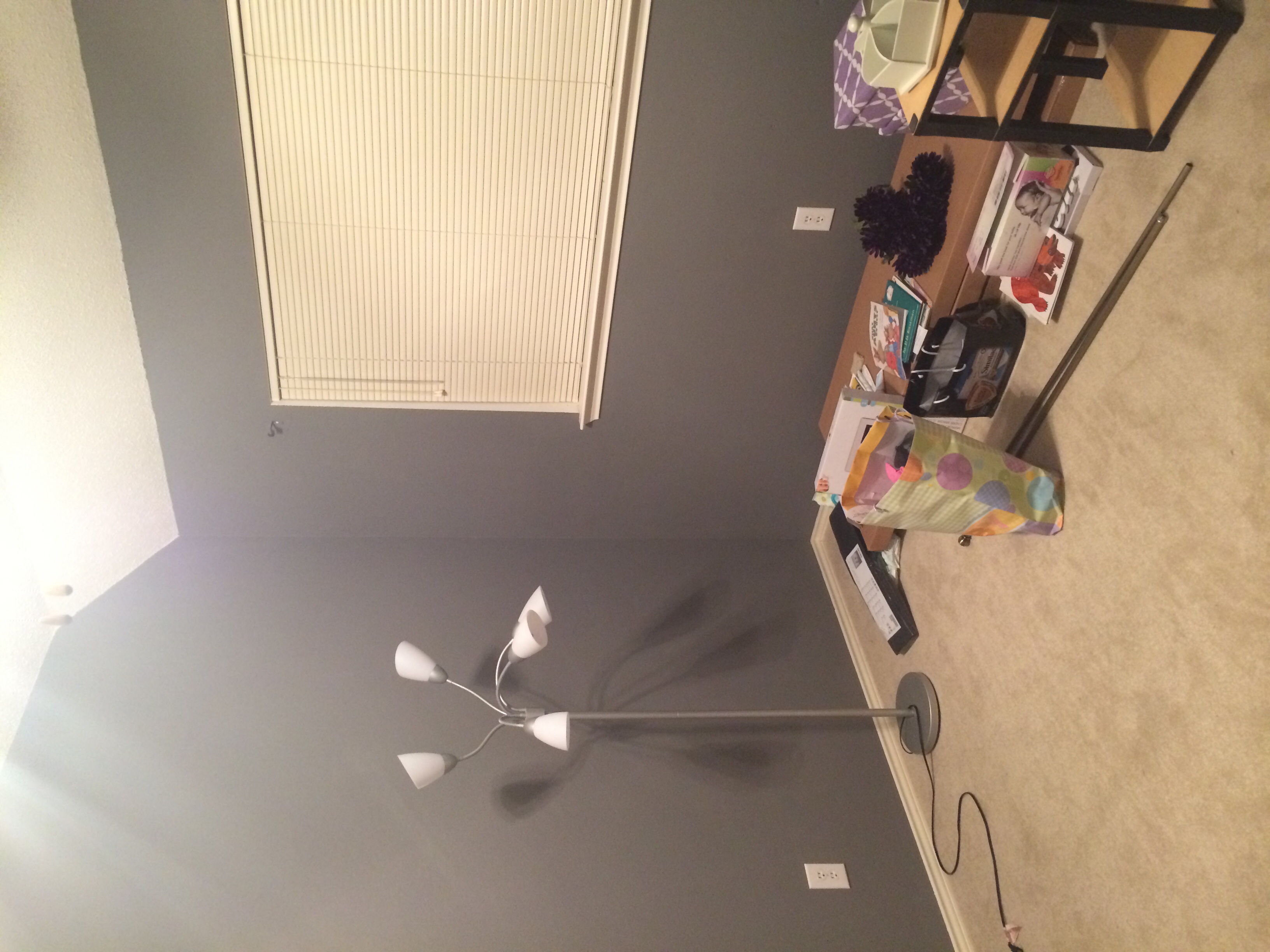 So our room is still a work in progress. Just finished the painting of the walls & they look like this: the accent wall and then light gray for all the other walls