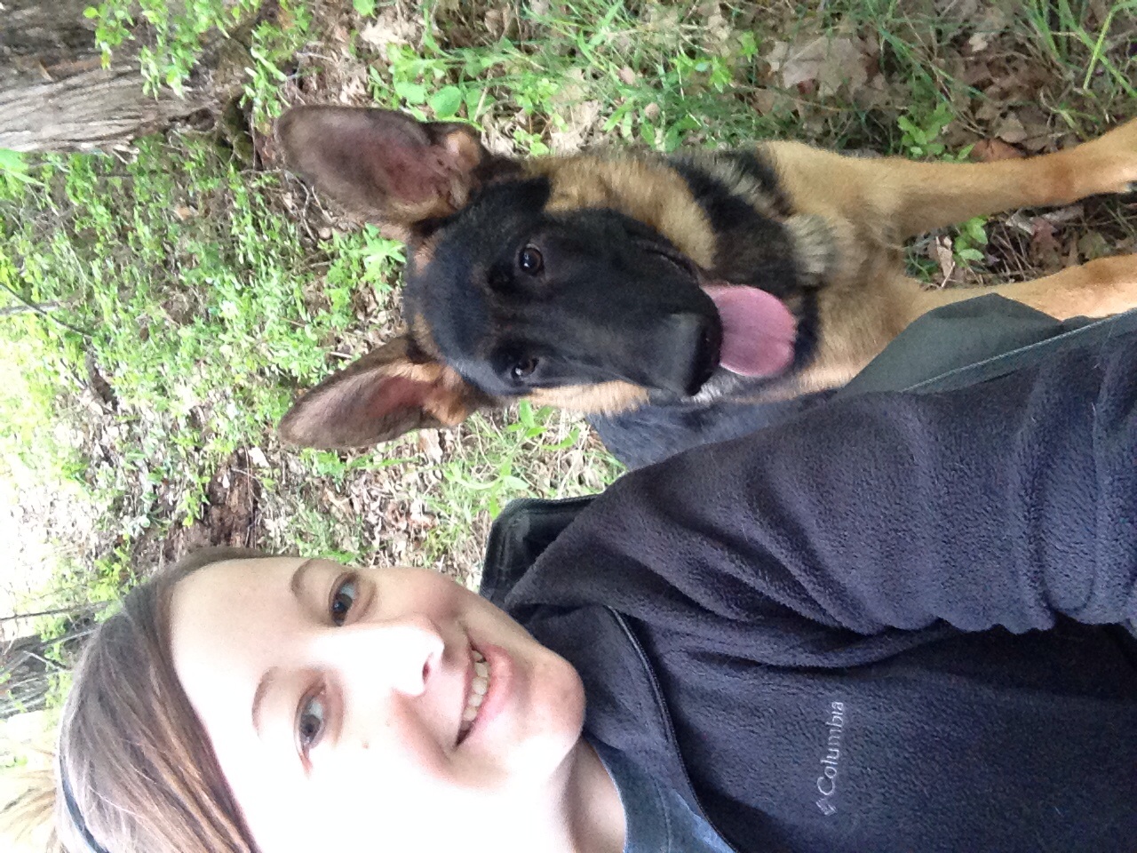 Our baby girl Riley (almost 2 year old tabby cat) snuggling the bump today, and our baby boy Drogan (7 month old German Shepherd) loving our camping trip over Memorial Day. They are great toddler practice some days... Lol!