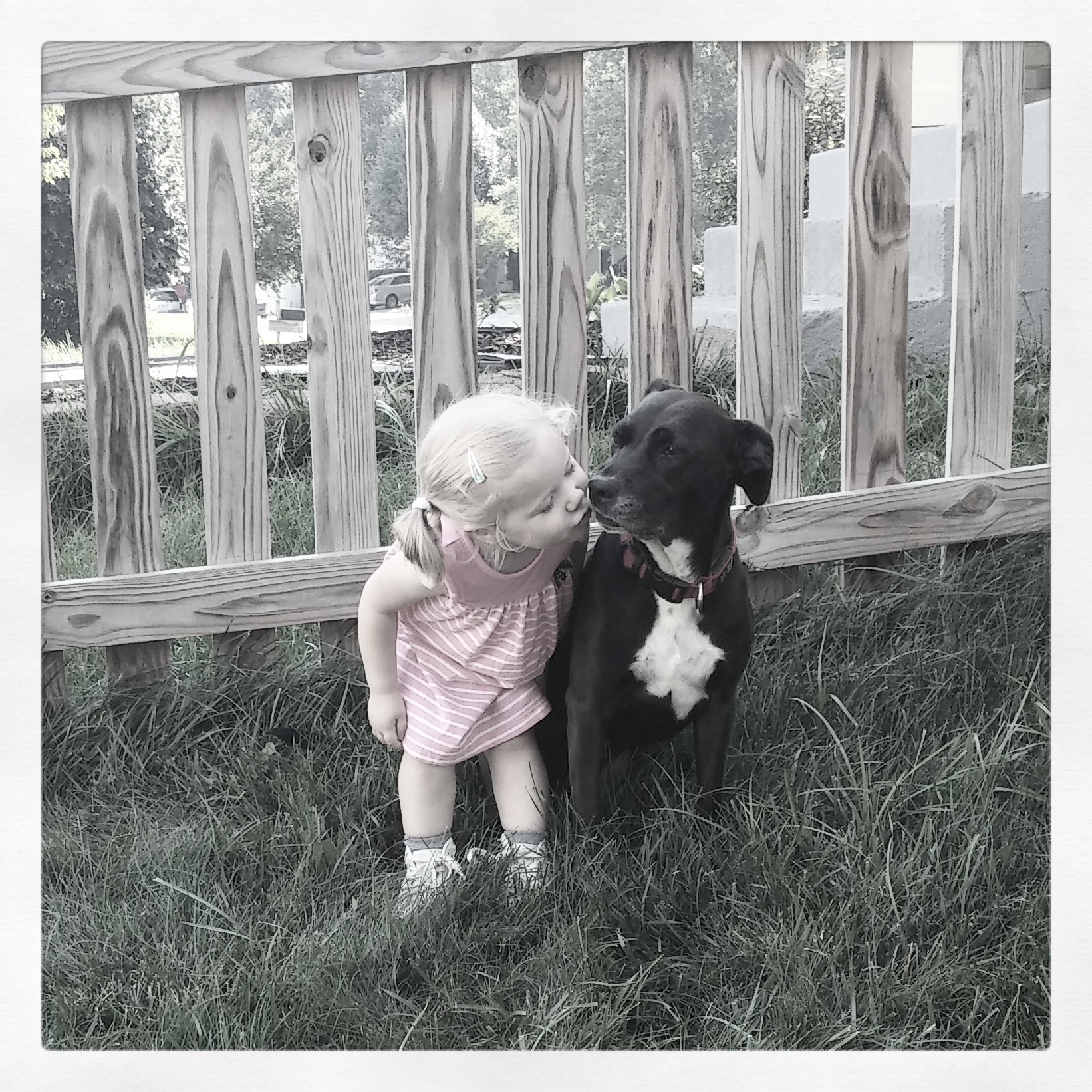 We have a 7 1/2yr old pit mix named Pretty. She came with the name from a good friend in college who saved her from a bad situation before joining the Navy. She's been the best dog, especially with the kids. Her pic is in my siggy, but here's another for everyone in mobile :-)