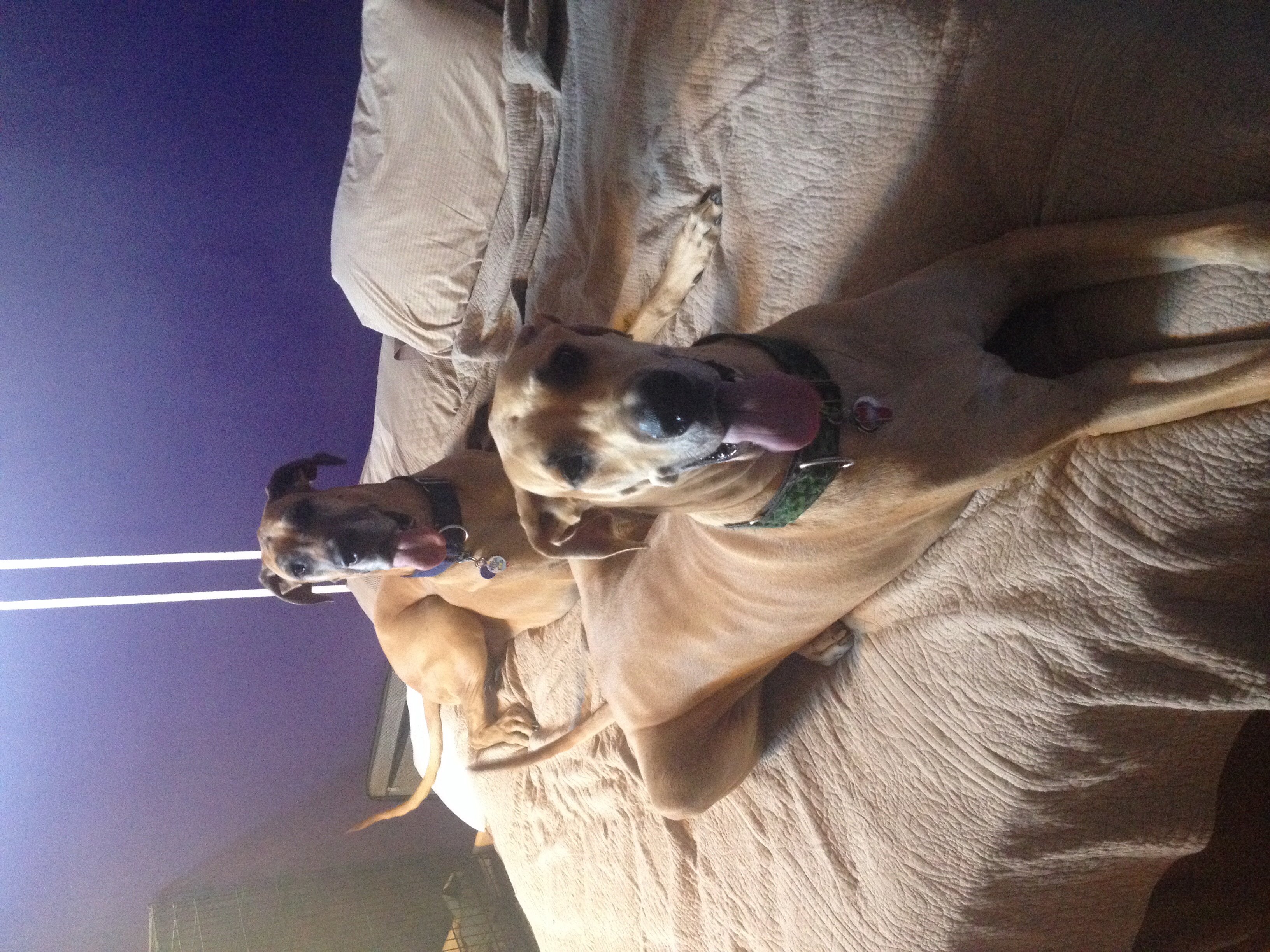 As for me, we have two rescues, a pointer mix, Enzo, and a Jack Russell-dachshund mix, Stu (avatar). Stu is almost 3 and we have no idea how old Enzo is.