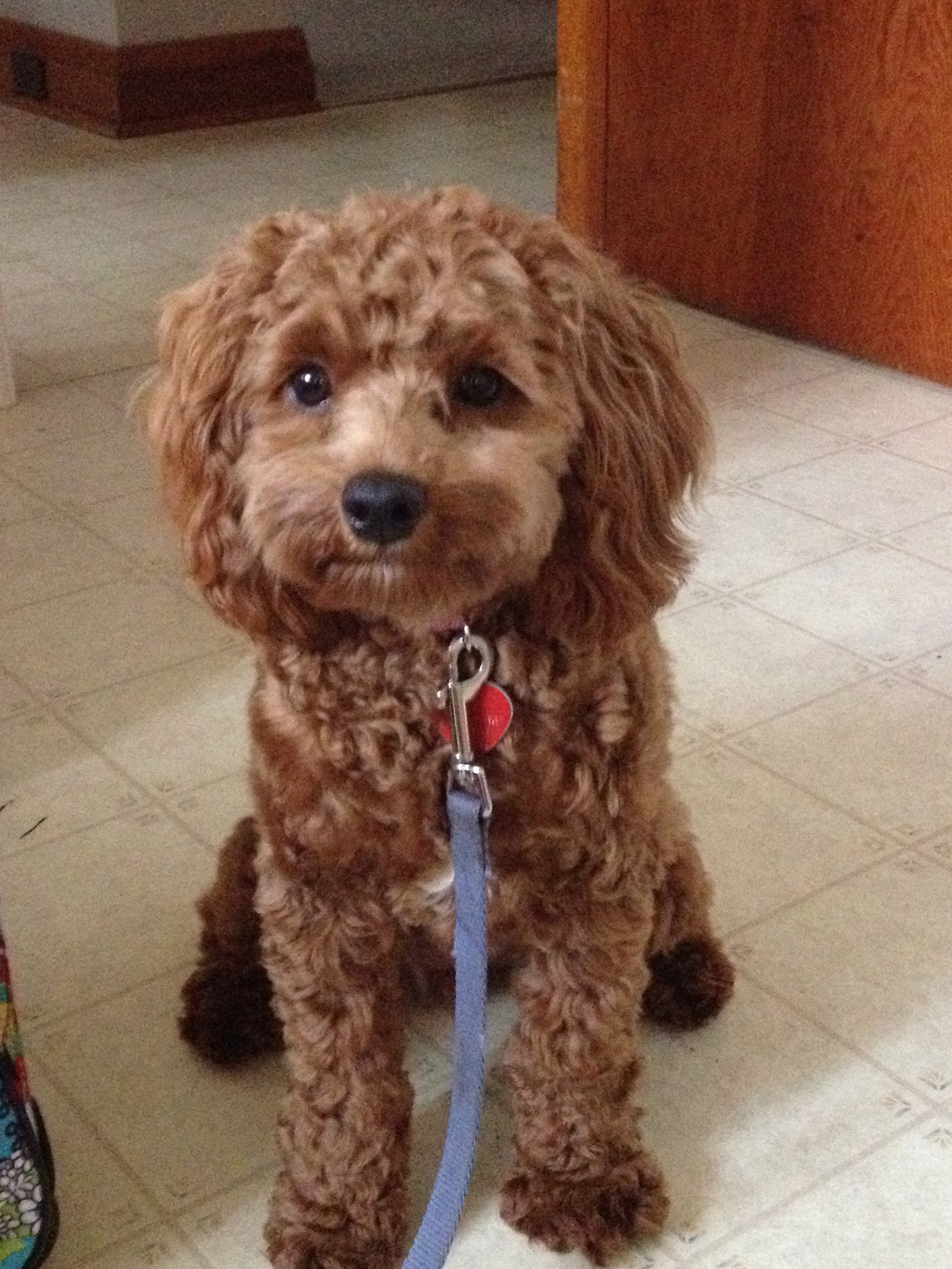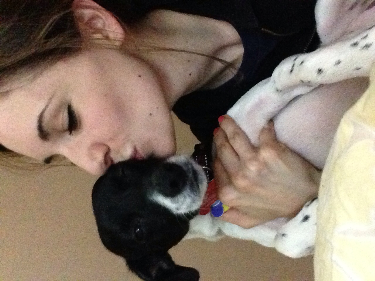 The dog is my other little baby. Her name is Scarlett and she is a cockapoo. She will be 3 in October. She is such an affectionate little dog. She snuggles me all of the time and if E or I are crying (or pretending to cry) she is right there with kisses and snuggles.