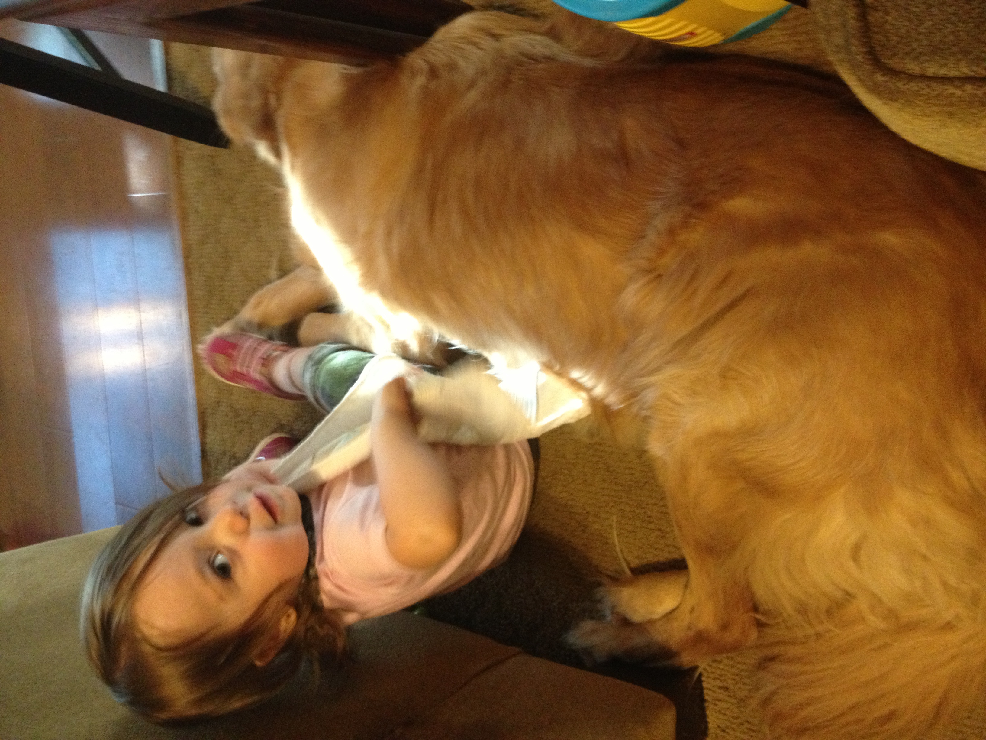 we also have Beatrix, a wonderful Irish setter/choc lab mix. She's the sweetest dog and loves the baby so much. Don't know how to post a pic from my phone.