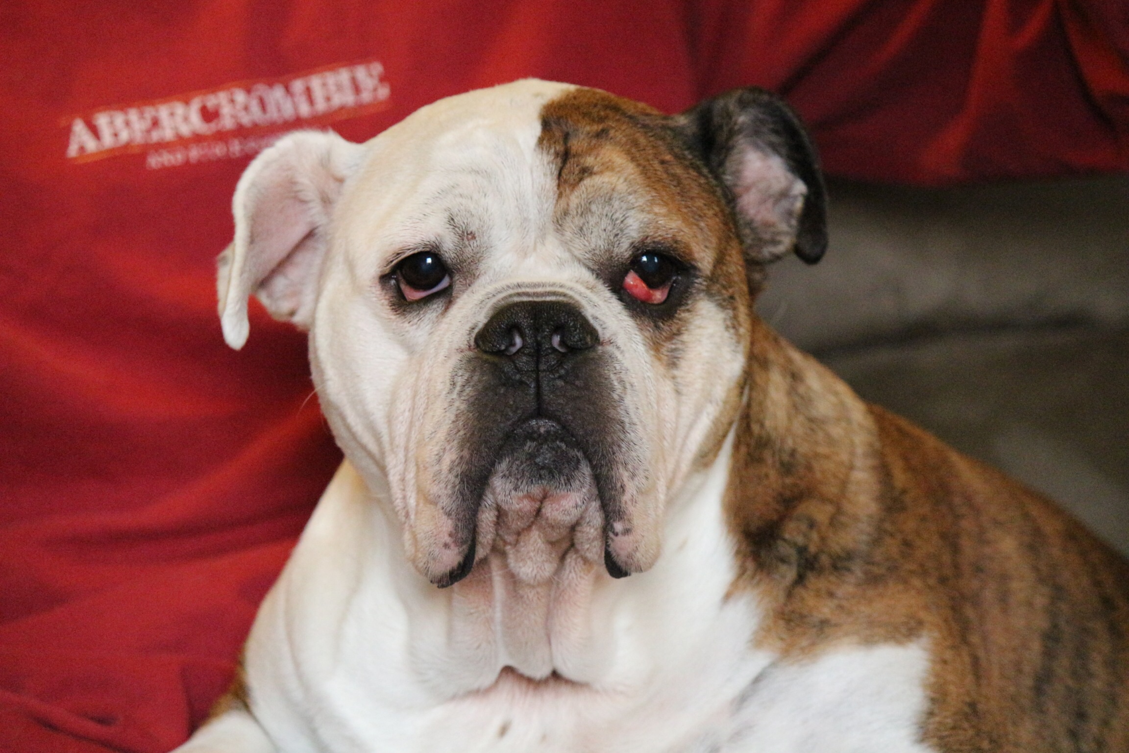 We have a 13 yr old (approx.) rescued pug. We got her 4 years ago. She had an eye infection, ear infection, rotting teeth, chunks coming off of her nose, was obese and is blind. But as soon as I sat on the floor in a pen full of rescue pugs she crawled in my lap and I had to have her. We got her all fixed up and named her Charlotte.