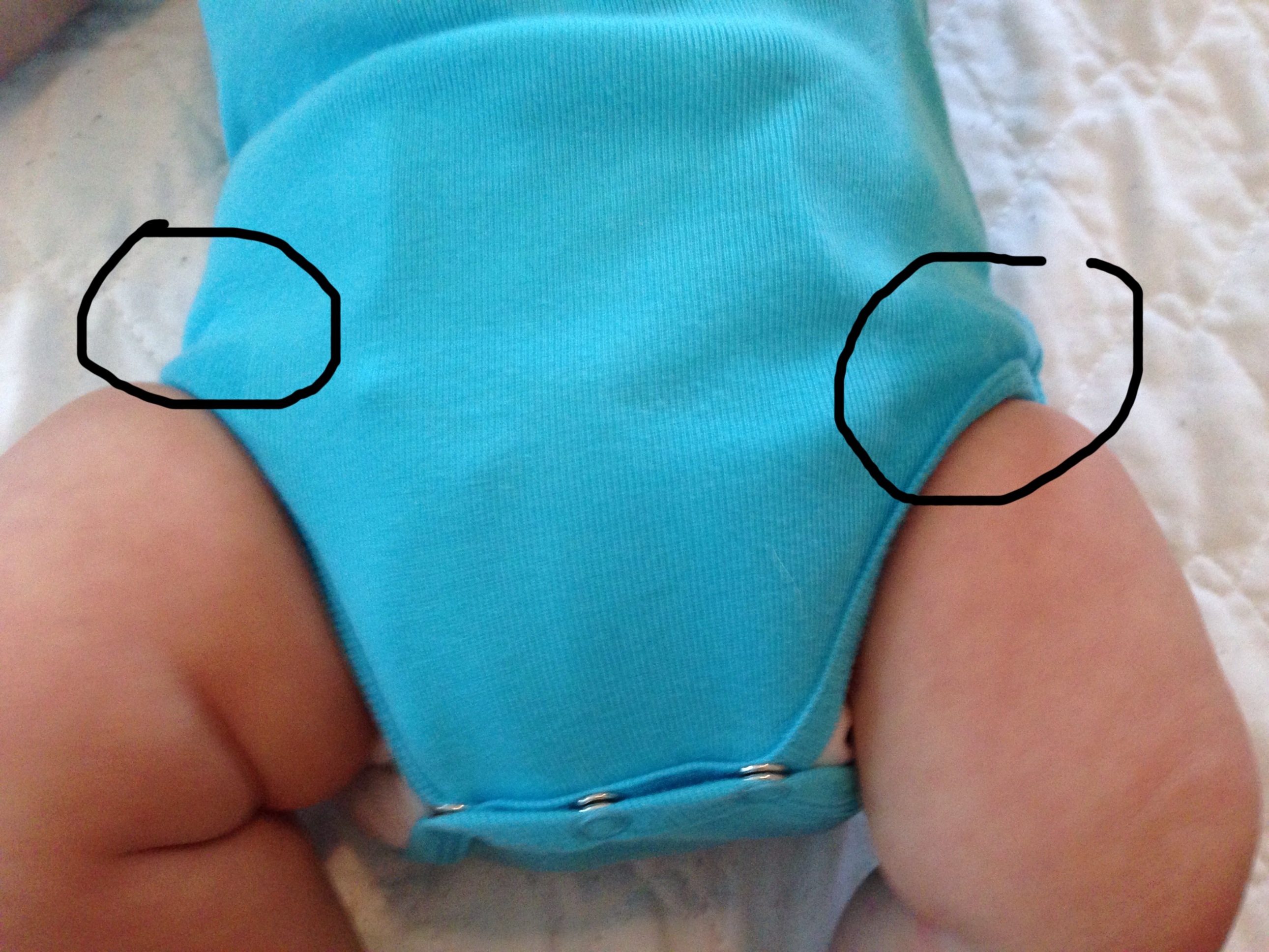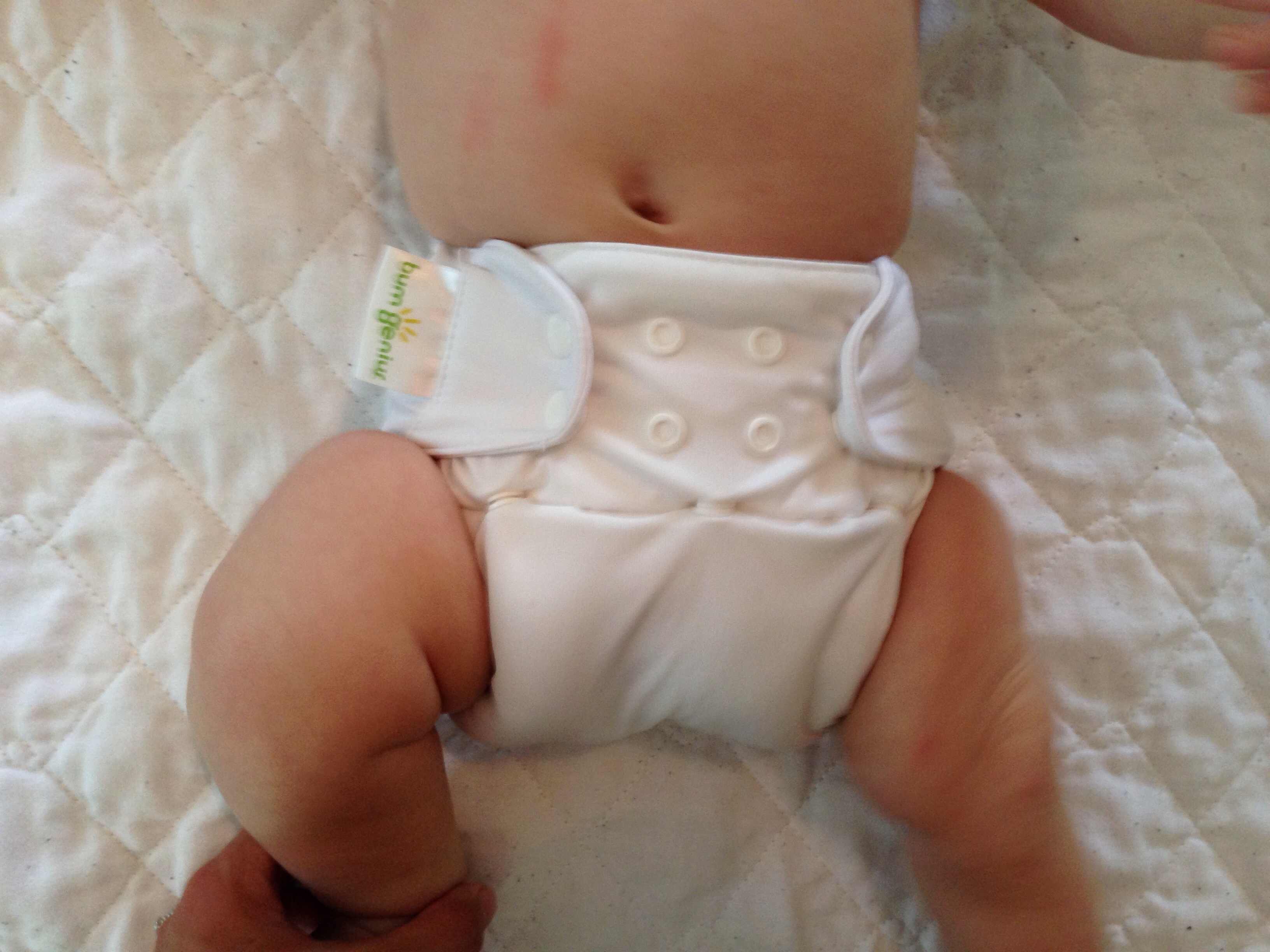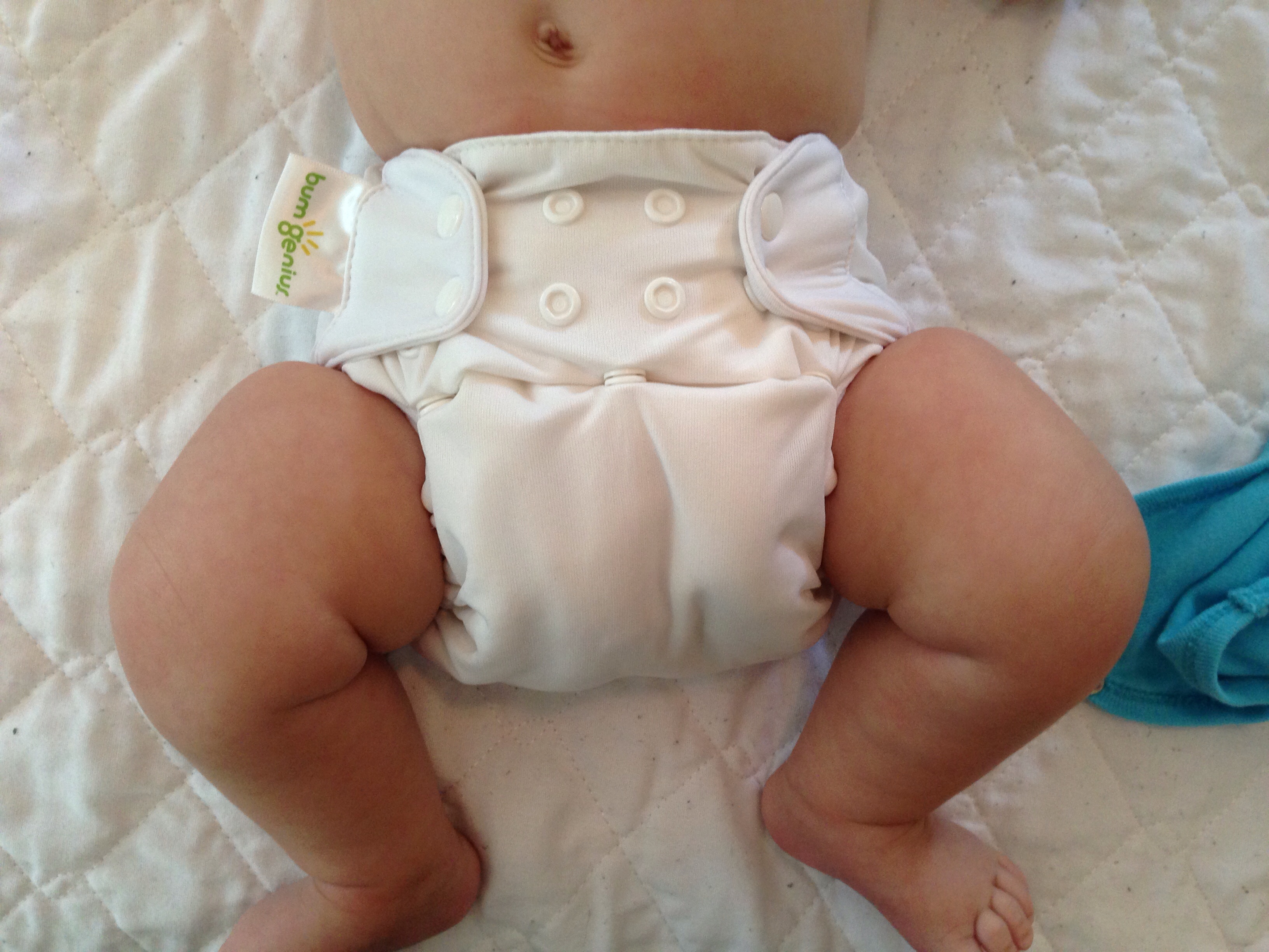 Here is where the leaks occur. I circled them since it's hard to see the wetness lol. Normally it's only on the left (his right leg) but today I tried small rise and this happened. He was wearing the diaper for about 90 min. The inserts were wet in the front but dry near his bum