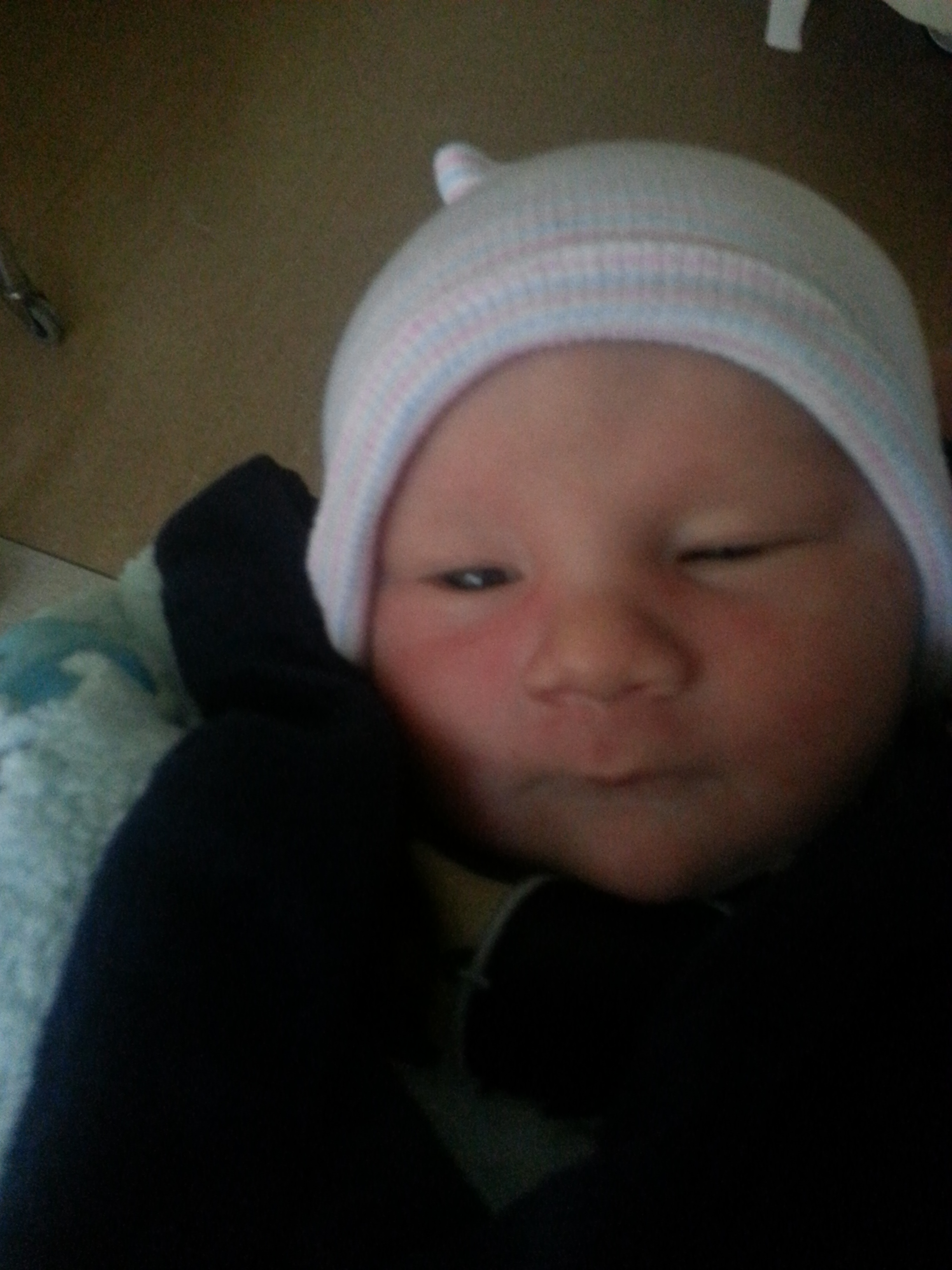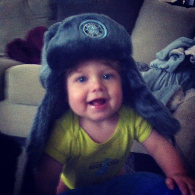 I'm going to be an AW today. The first is an Ice Bar hat from Vegas. The second was outside exploring on vacation. The third is him at daycare during lunch. LOL. Love this kid!
