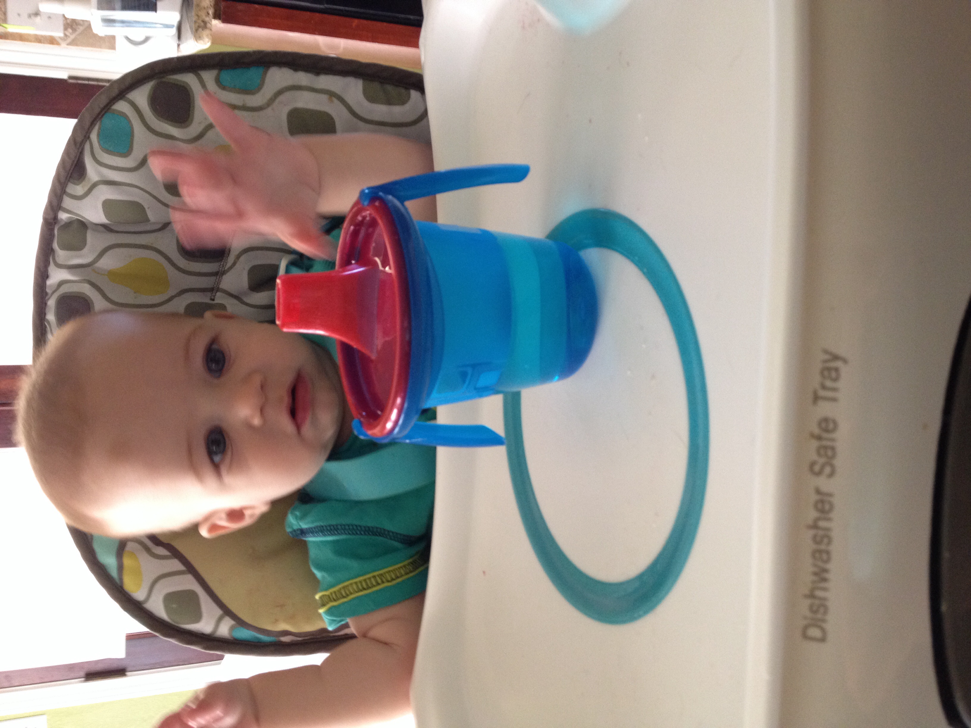Playing with a new sippy cup.