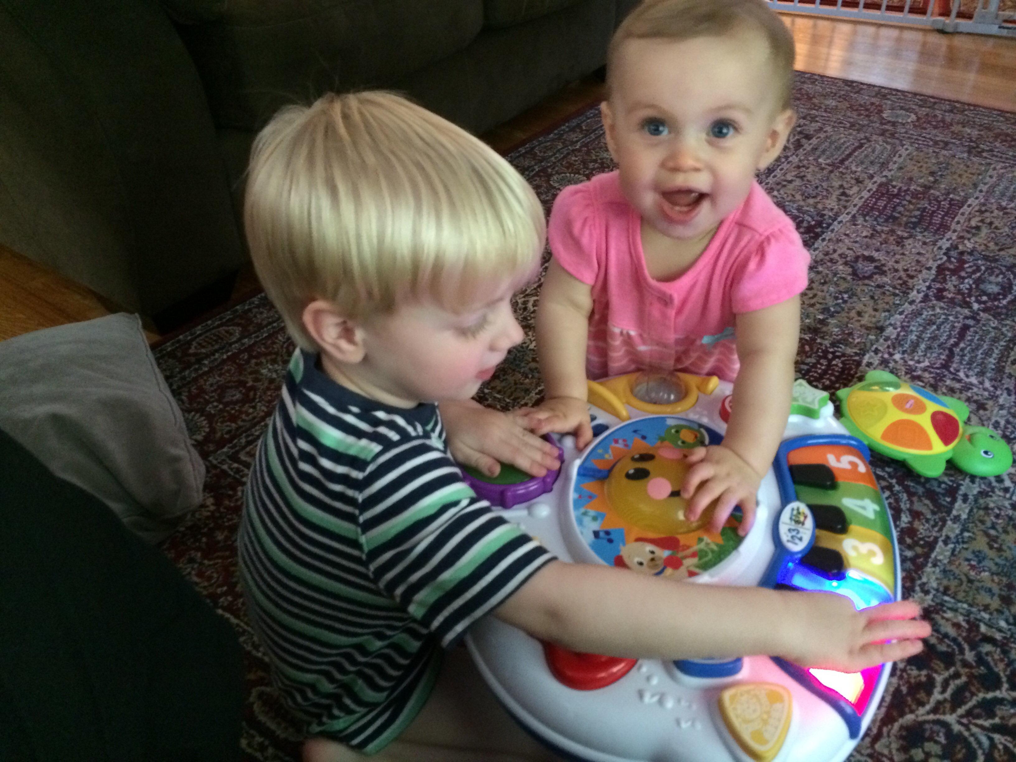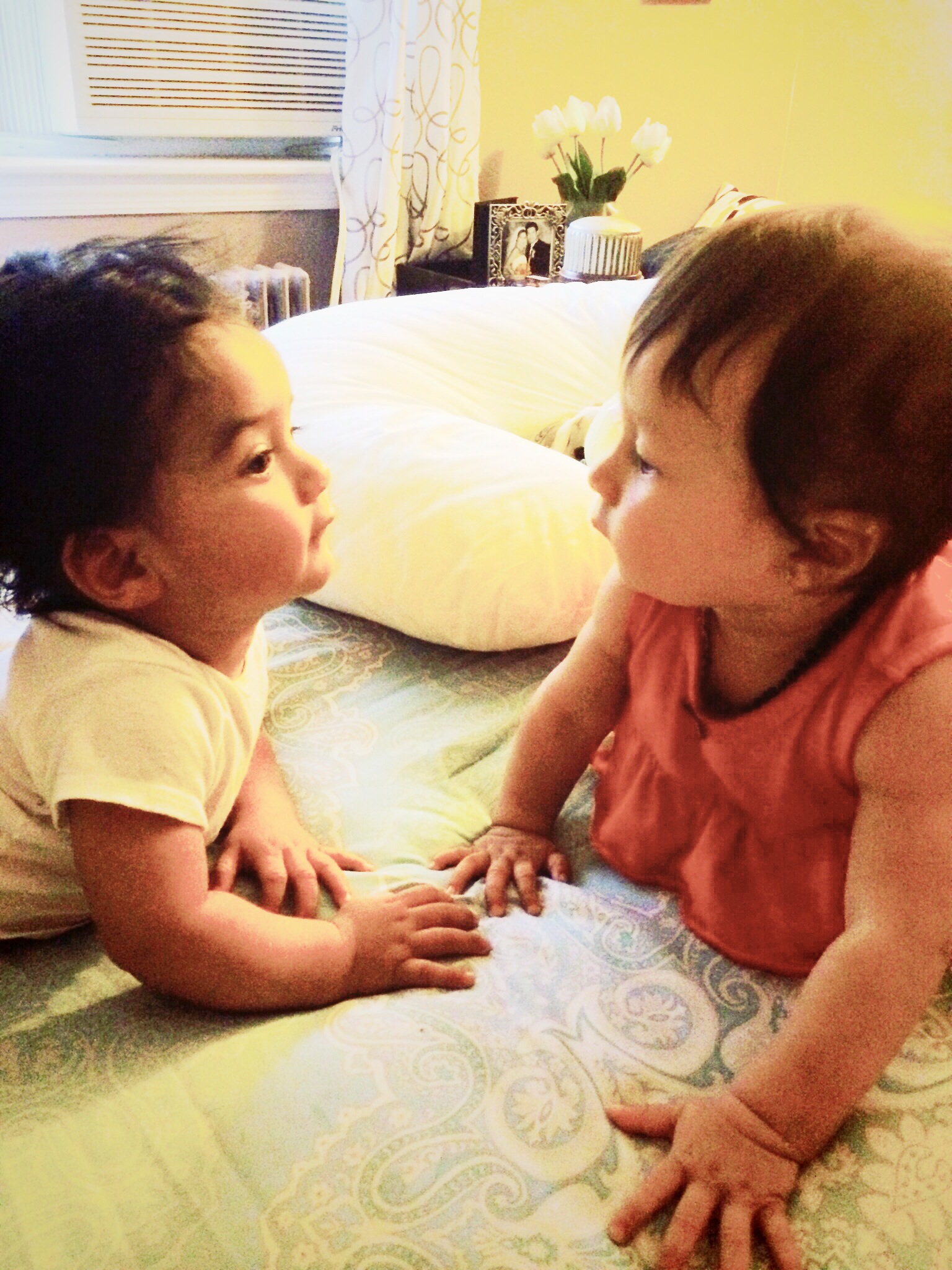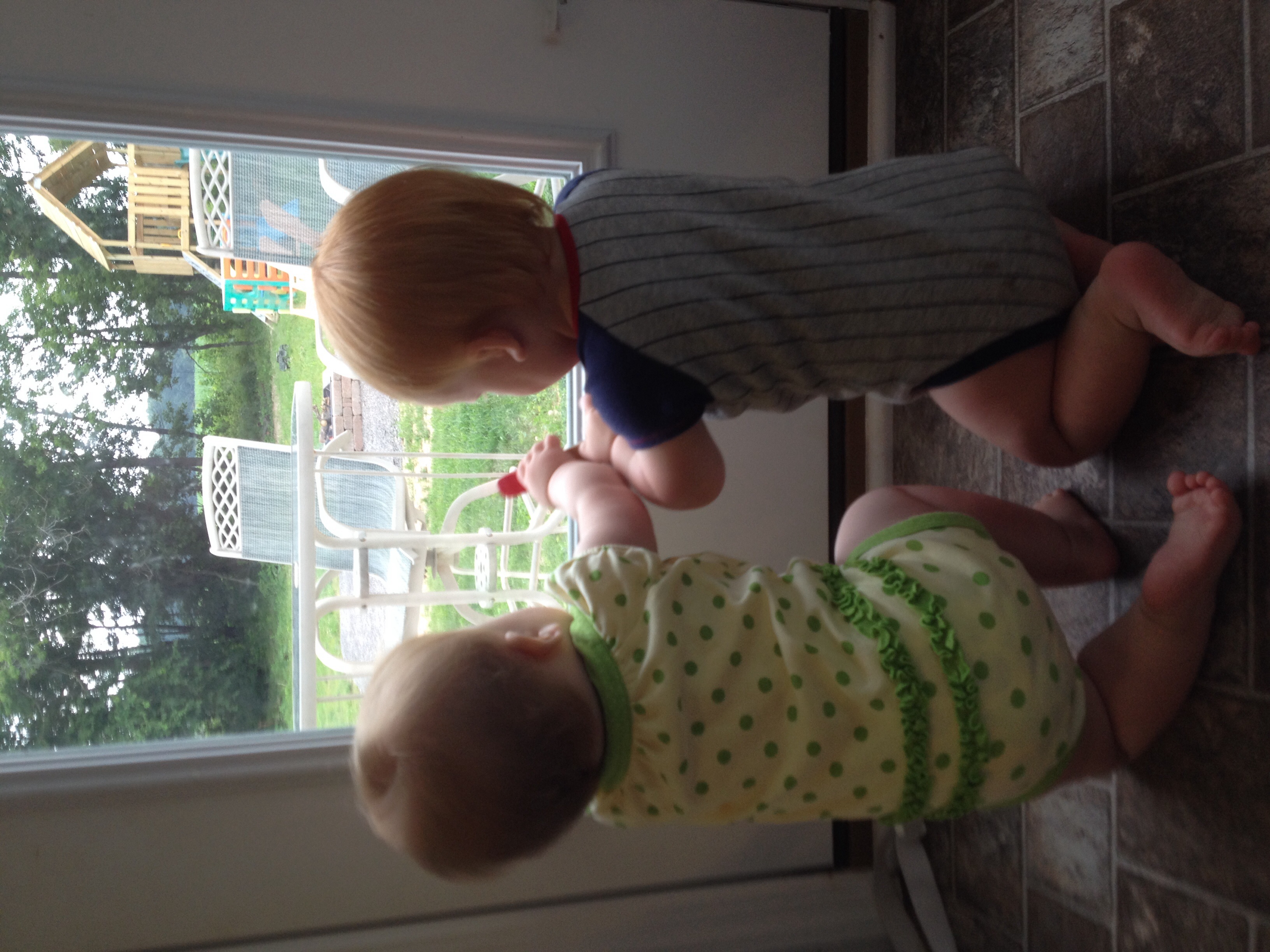 She turned 9 months this past Friday ... I took this yesterday while visiting her little cousin 6 months... Dbl cuteness! Look at all his hair! Love it