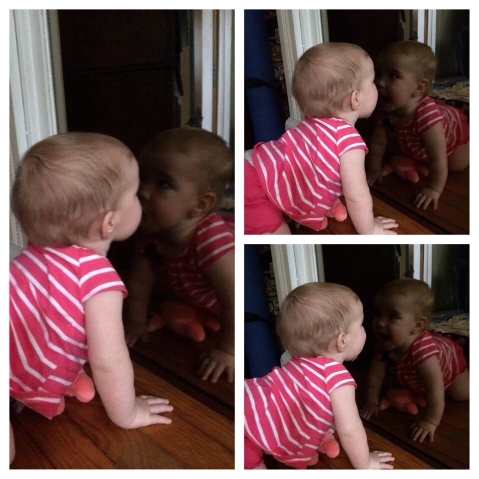 My mom sent me this when she watched Emma for a few days while dh and I were out of town, she found the baby in the mirror and had to give her some love