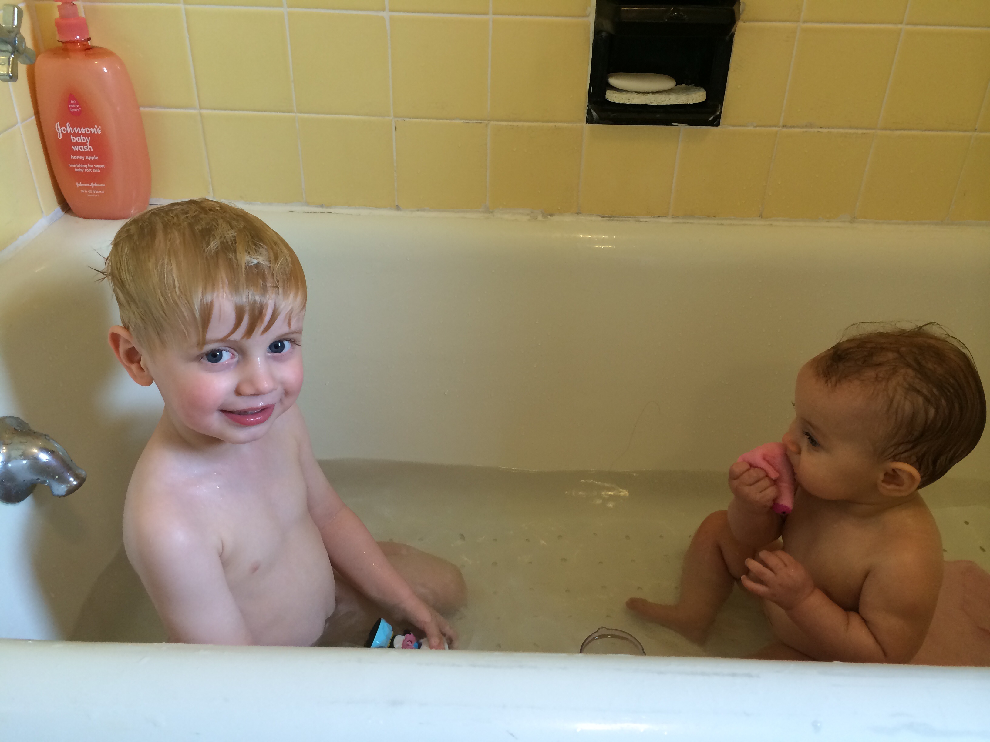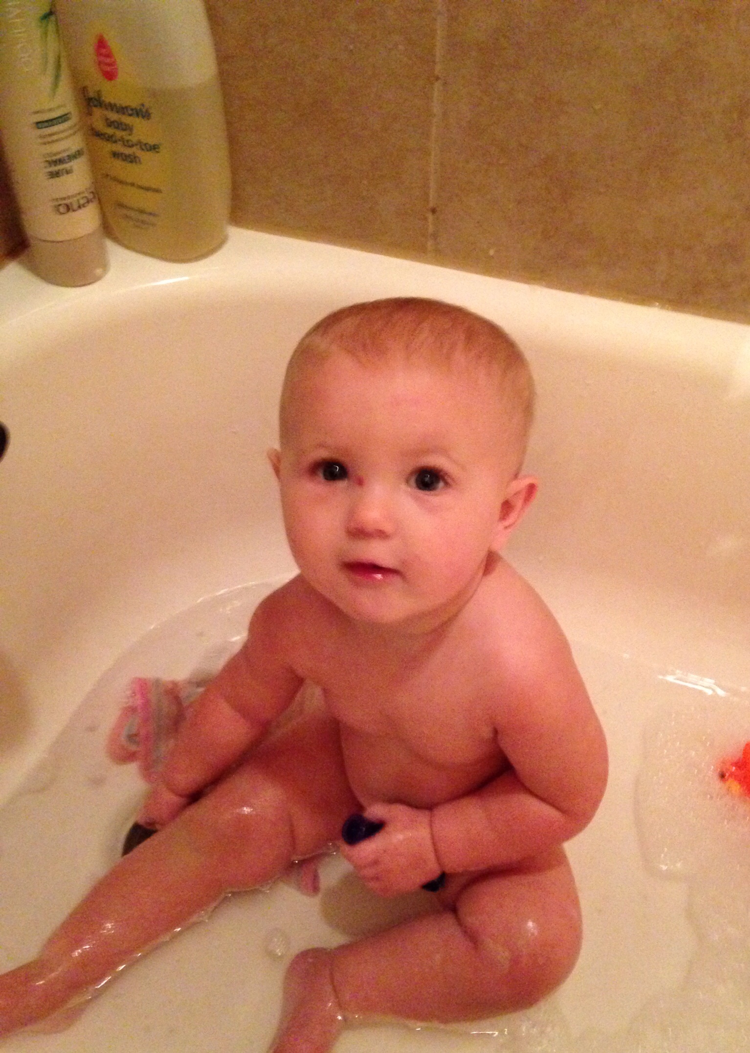 Callie in the tub. She loves baths...still. Haven't taken many photos because she's been taking good naps (like a 4 hour yesterday followed by another 2 hours) so I'm assuming she's growing.