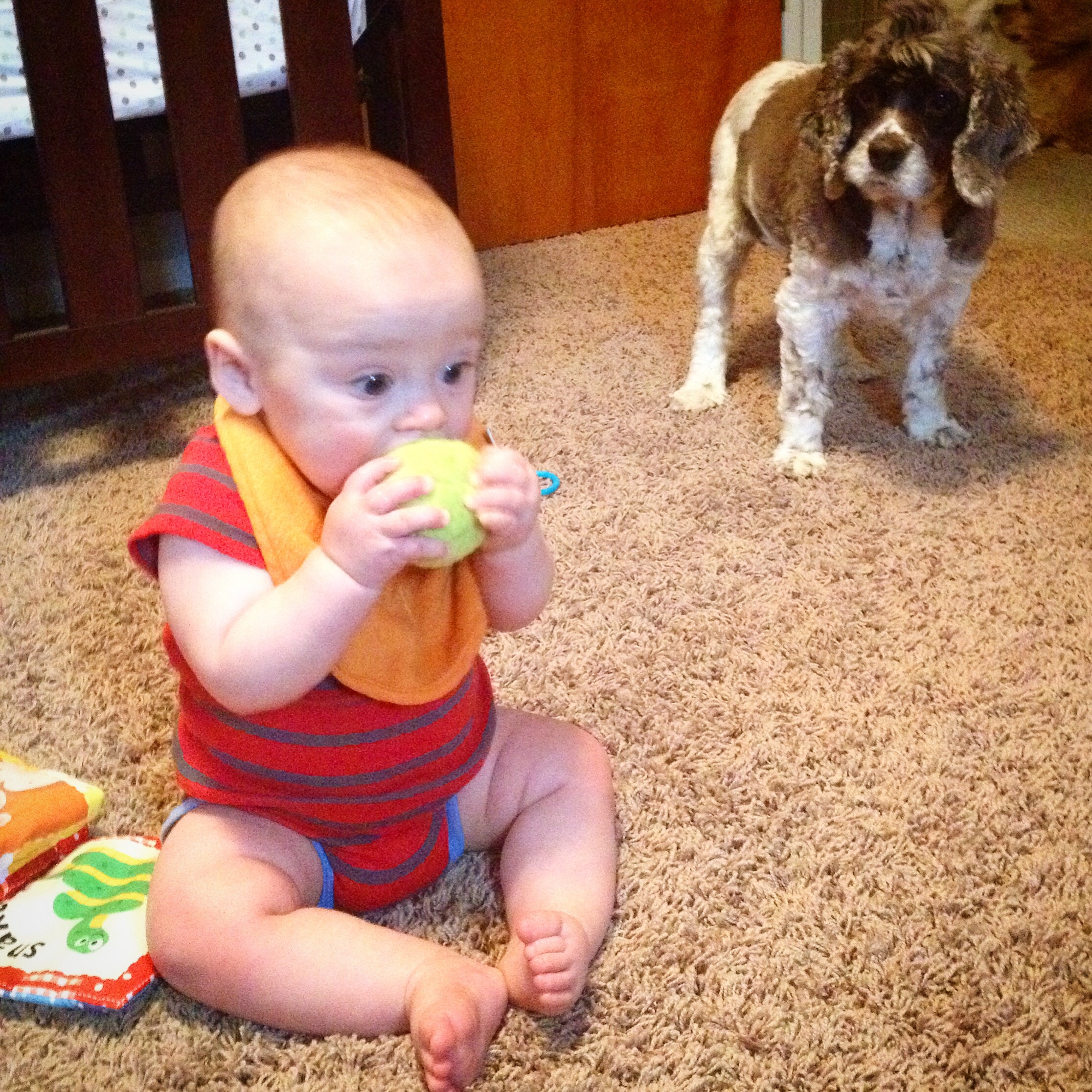 Lots of sibling pics this week. O is finally starting to be good with her. They are so darn cute. Also, Skye started pulling up and standing this week. Yay!