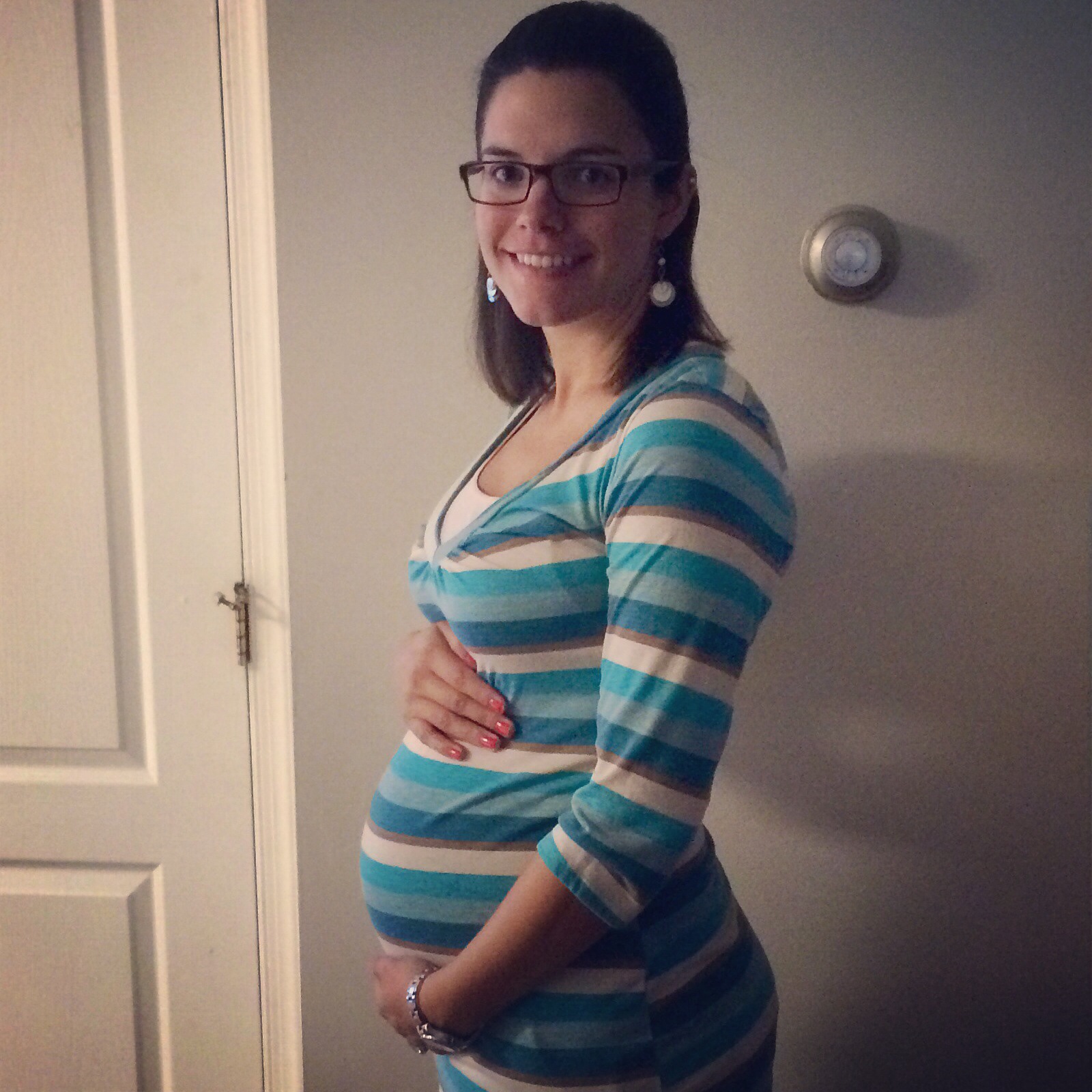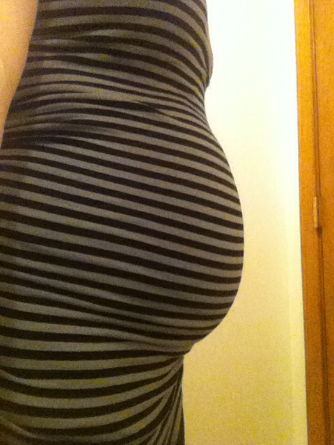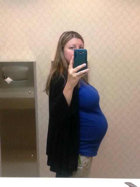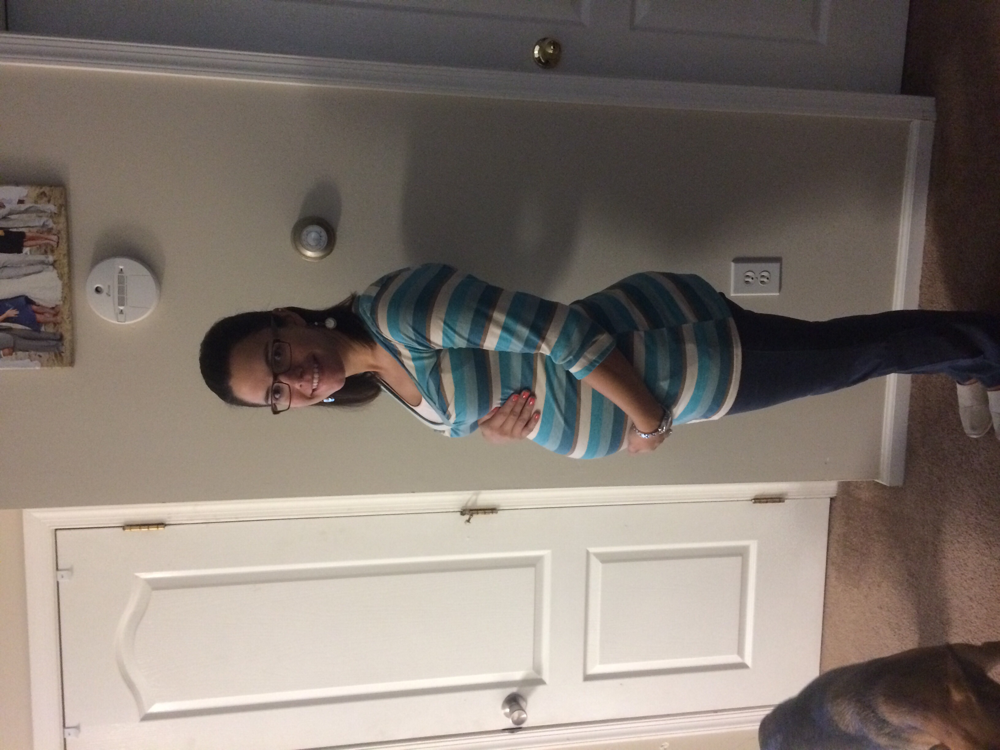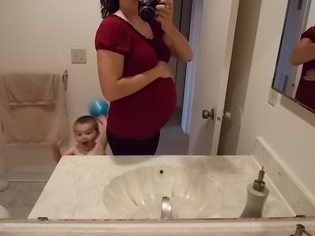 28 weeks! I was going to correct the flash but it hides my face so I decided I didn't care. Also it turns out black is NOT always slimming! Beautiful bumps ladies. @35nhappy and one adorable baby! That pacifier is so cute! I'm glad he's doing well.