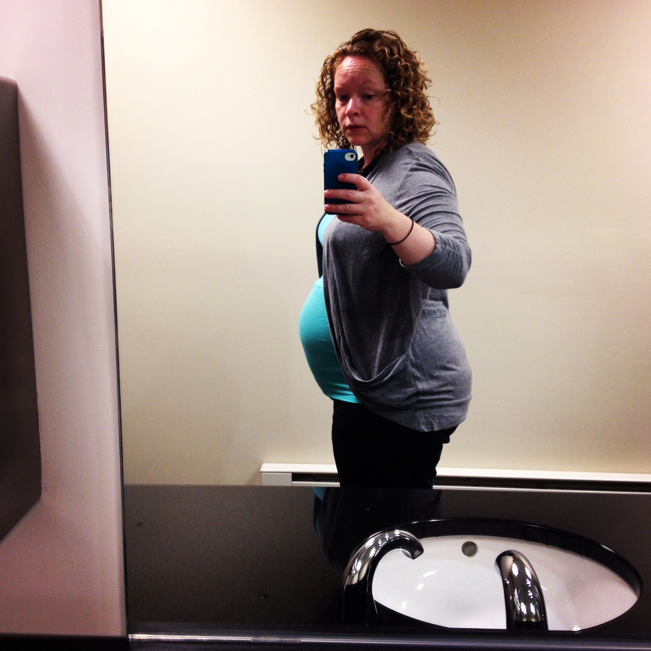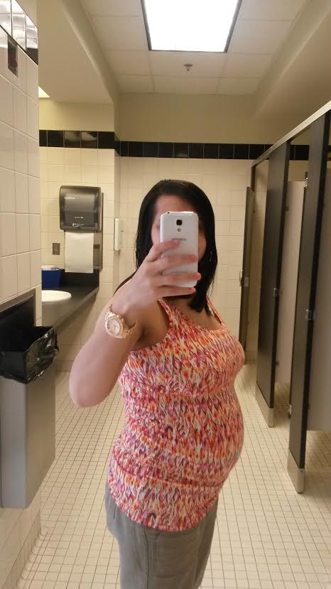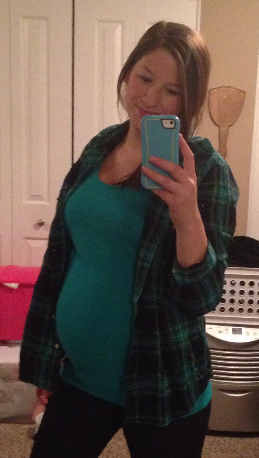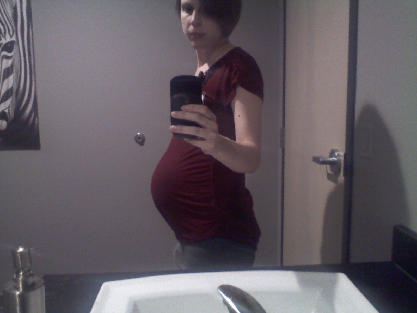 28 weeks! I was going to correct the flash but it hides my face so I decided I didn't care. Also it turns out black is NOT always slimming! Beautiful bumps ladies. @35nhappy and one adorable baby! That pacifier is so cute! I'm glad he's doing well.