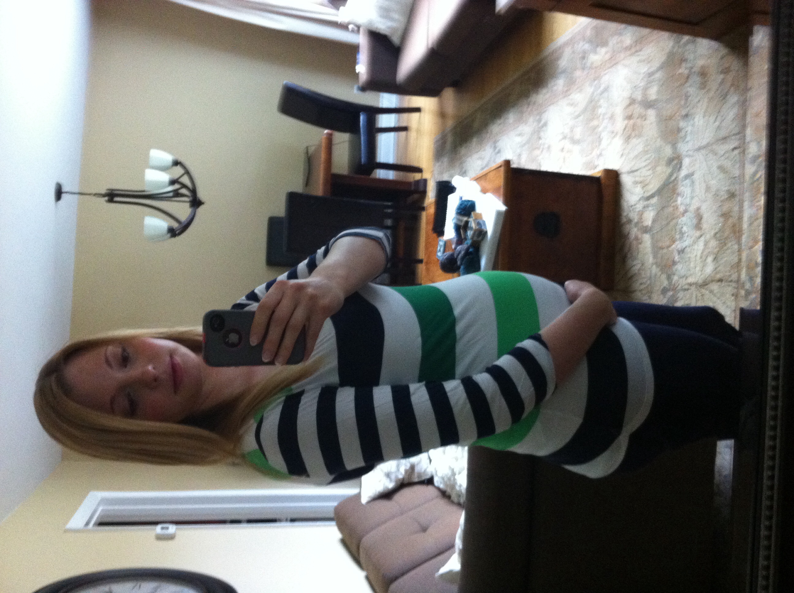 I'm OBSESSED with the amount of striped tops/dresses today! & the fact that no one can quite remember how far along they are! Haha x