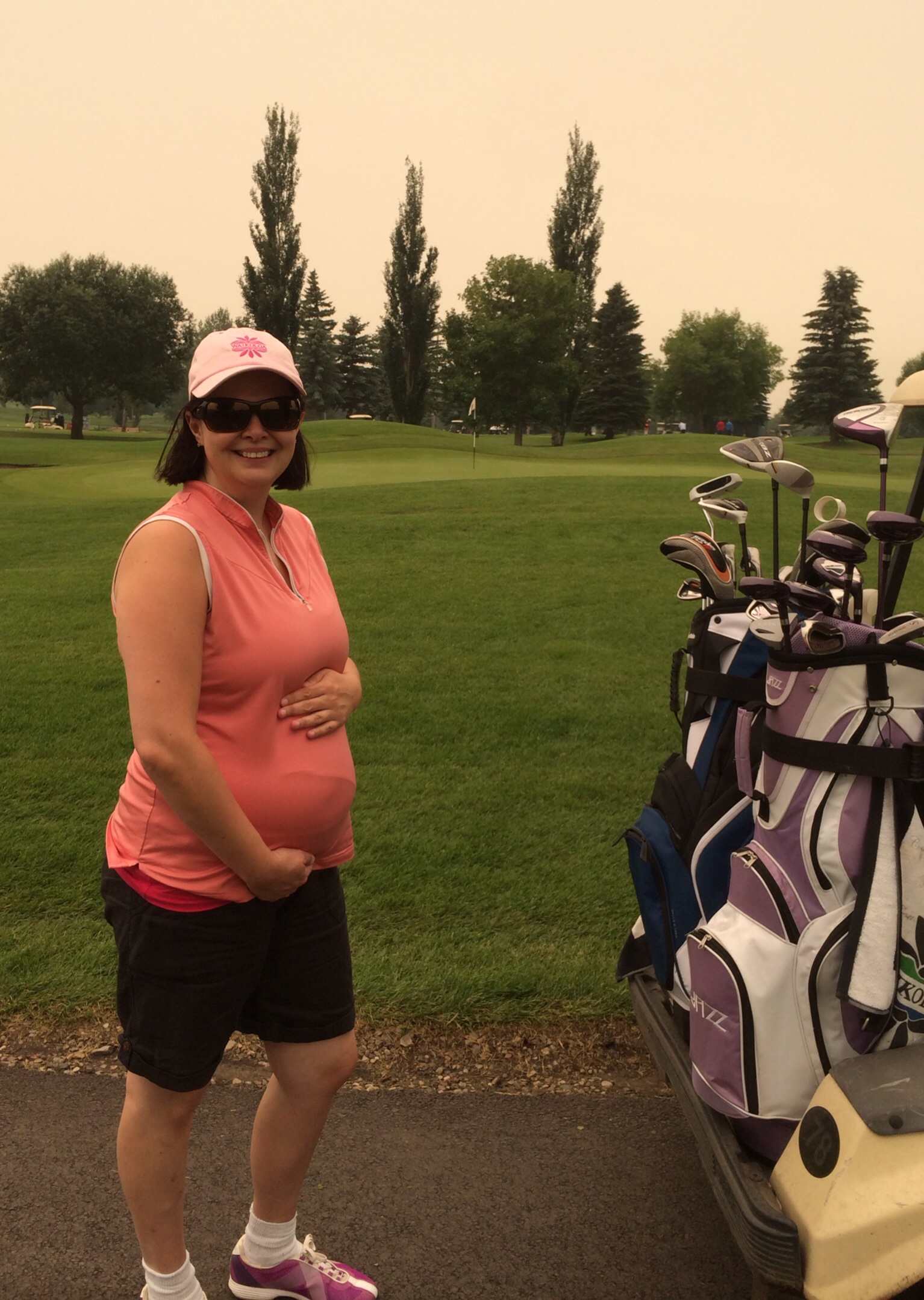You all look beautiful! Here is mine today at 24w 1d on a mid morning golf day with my DH. It is super haze out cause of a couple of forest fires near by.