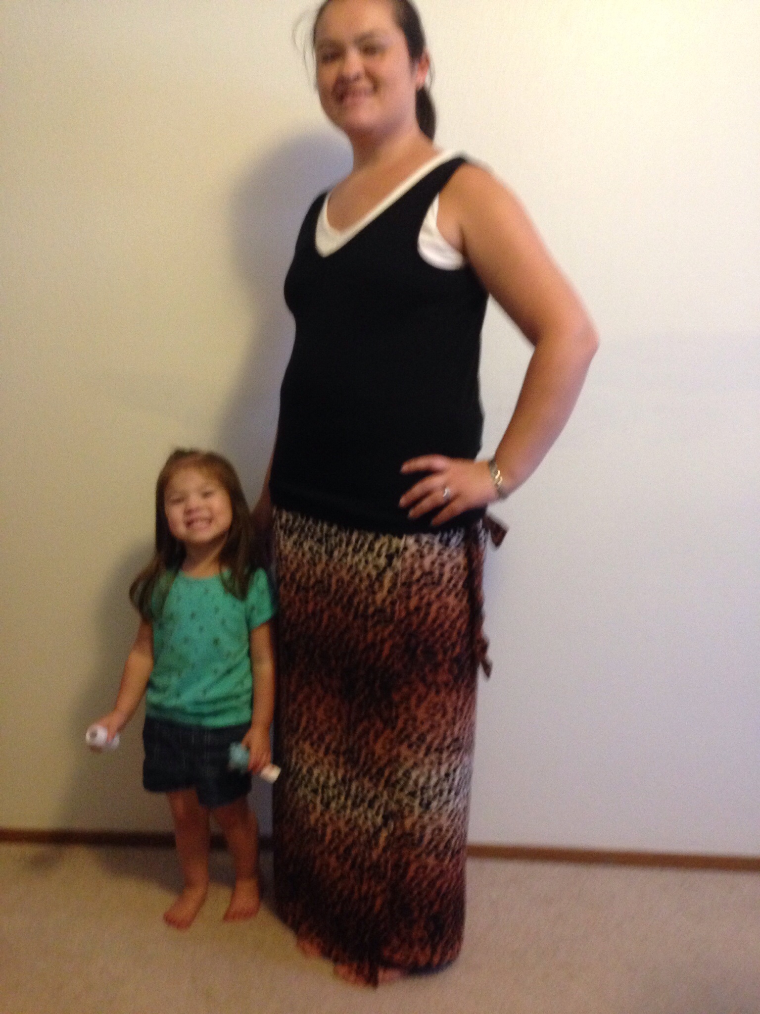 A skirt! It wraps around and ties at my hip. I was telling my MIL how I wanted some new long skirts but everything I've tried on is way too long, like I totally step on them. So she bought some fabric and I made it! It's still long and I don't plan on wearing it out of the house. But it looks not-so-bad for an at home skirt