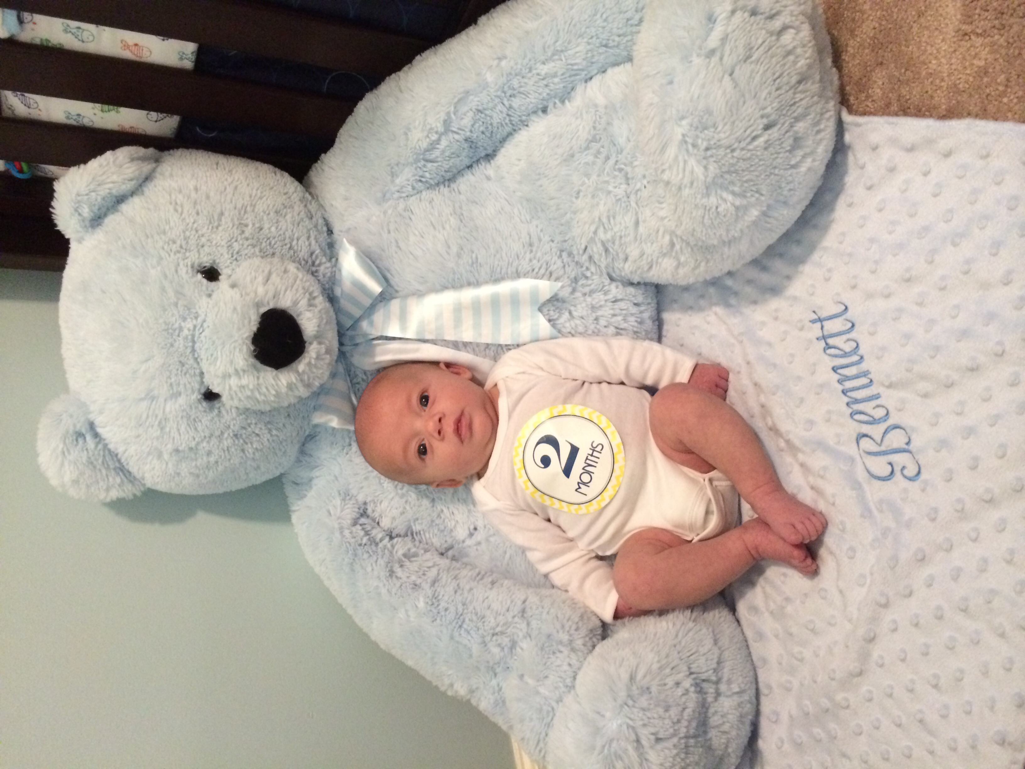 I am so proud of B! he weighed 10lbs 14oz at his 2 month check up and has finally outgrown most of his newborn clothes! looking at him would you ever guess he refused to eat for the first 3 weeks of his life? I mean check out the double chin :P