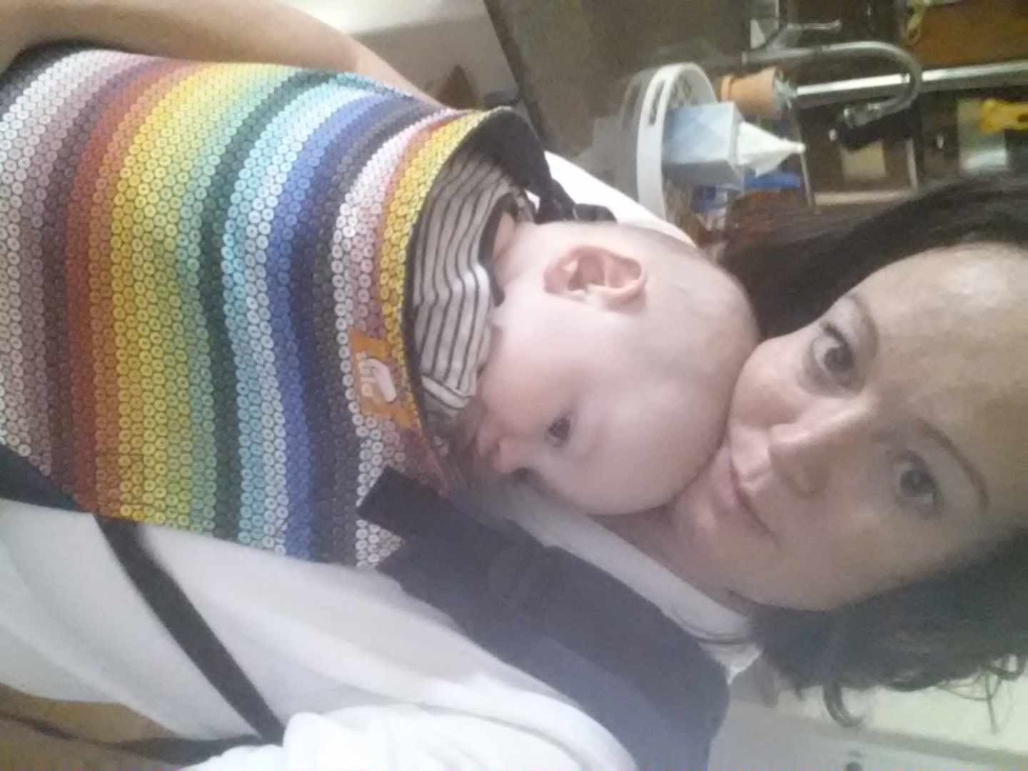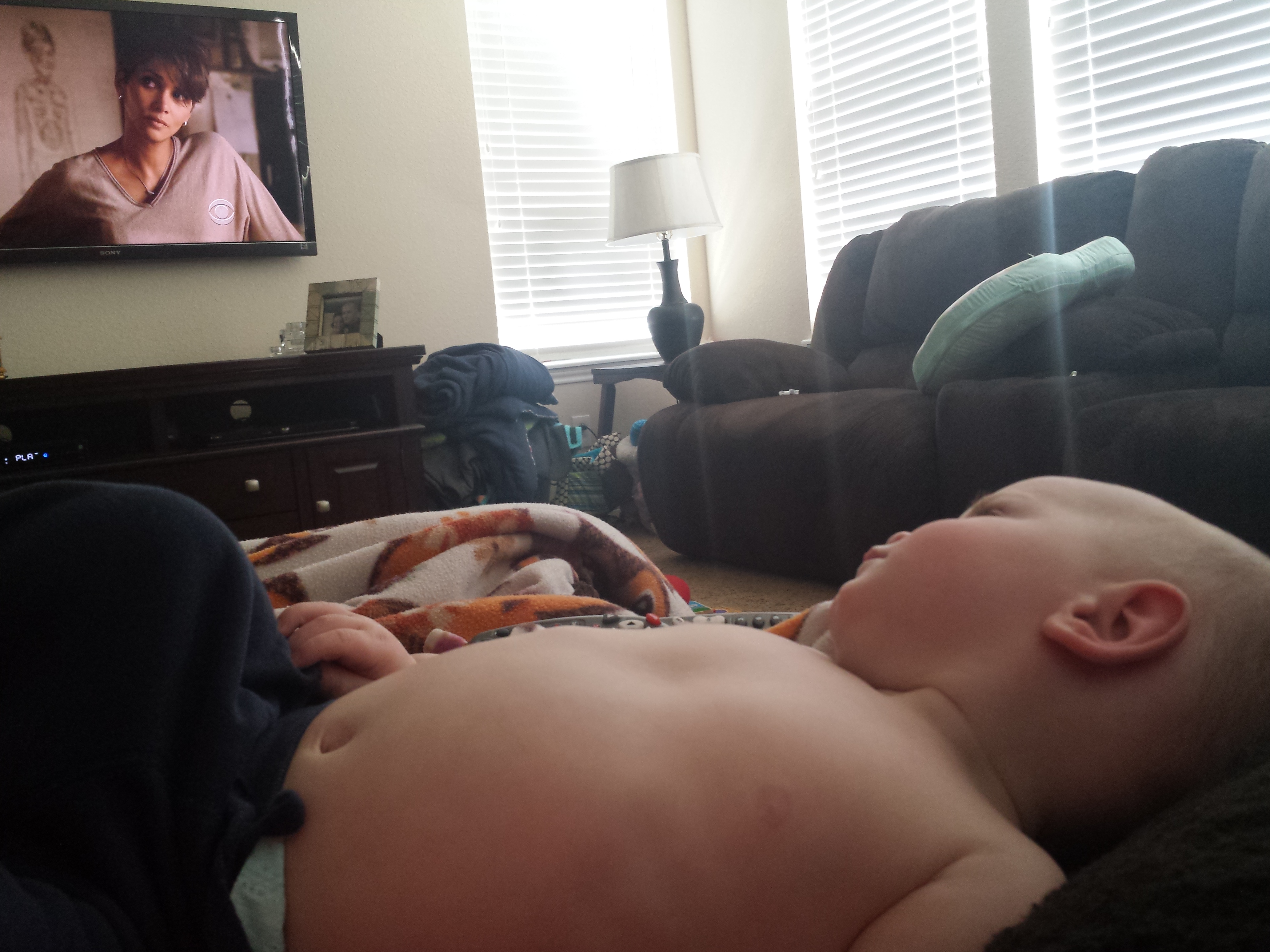 So here is a pic of my and my sick LO yesterday. My confession is that today I resorted to lounging and watching TV with him all afternoon - 2nd pic. He has been so snuggly and lethargic and I was exhausted from not getting good rest last night with him.