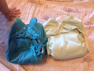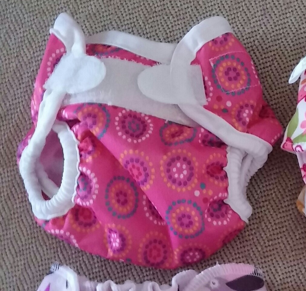 I have: -Bumkins newborn cover - owl snap -Bummis super brite cover (small) - pink circles aplix ^^ Both were gifted to me but are too small for A so I have no use for them. Both are in VGUC. The Super Brite does not have a tag (I found where it was cut off). - gDiapers covers (small) - green and orange; VGUC (some staining on elastic edges of liners). Aplix looks and functions perfectly.