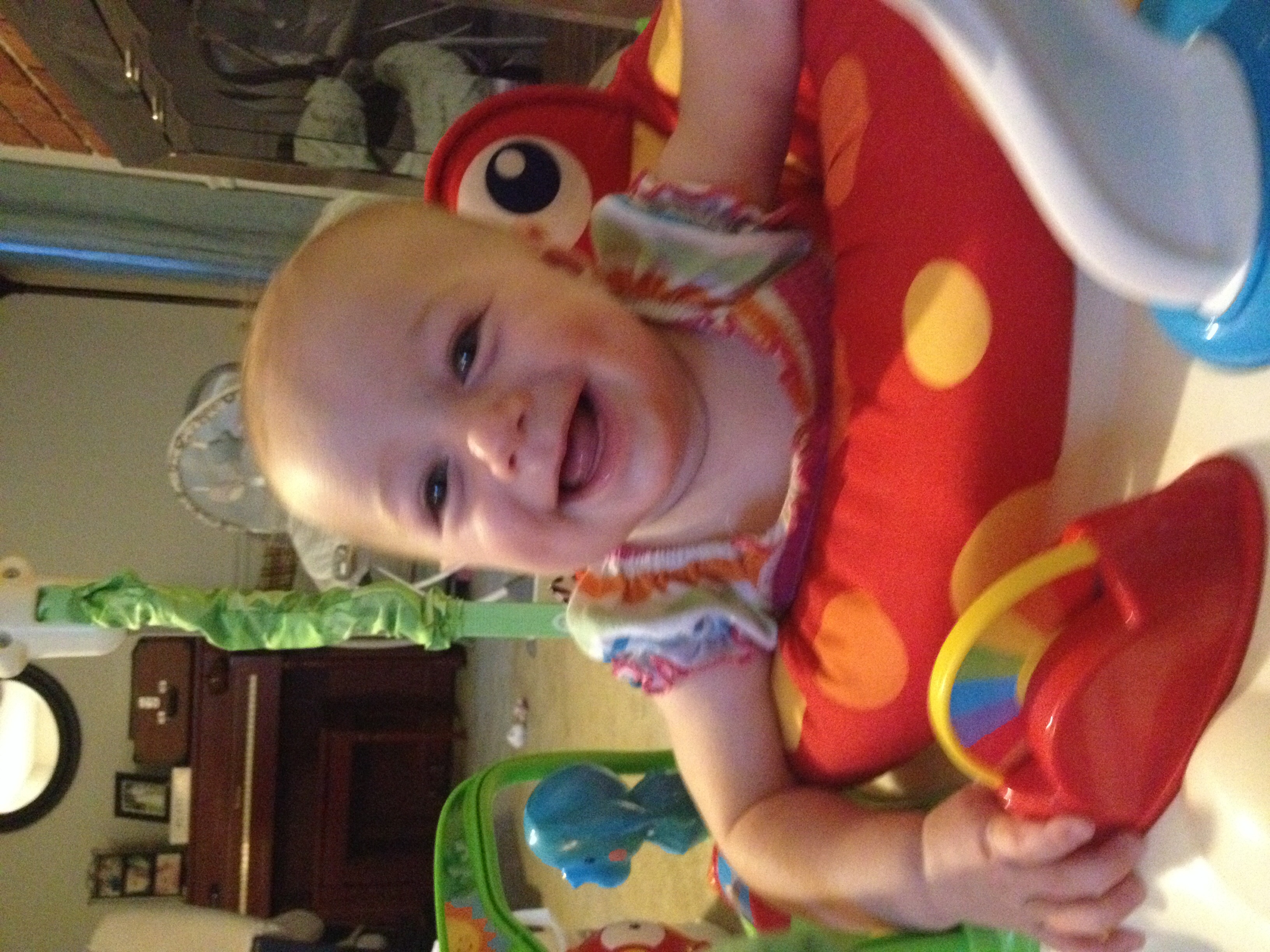 Everyone is constantly talking about their exersaucers and it makes me wish we had gotten one of those instead of the rainforest jumperoo. I don't think the toys on it are entertaining enough since LO can't really "jump" yet. Plus having a giant red frog constantly staring at me is giving me the creeps.