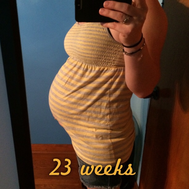 23 weeks here, a couple different angles, but I no longer need to take the pic from the side to see how big my belly is.