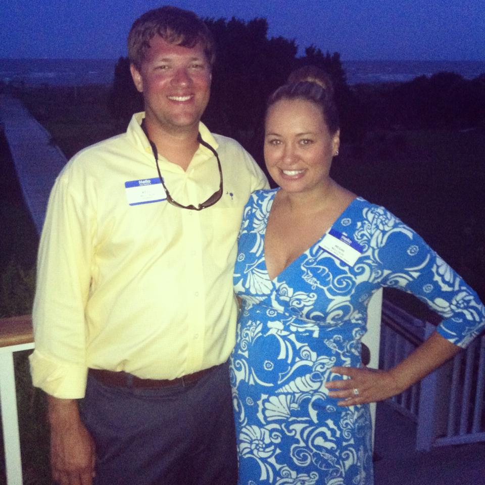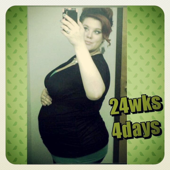This is at exactly 24 weeks at our good friend's wedding in Charleston. (Yes, we are wearing name tags. I have no clue why..)