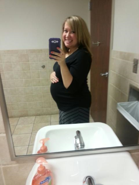 Bump pic from a surprise small extended family shower (Baby Chloe's bow in my hair!). I feel like I look the biggest yet (which makes all sorts of sense...)! Happy bump day!!!!!