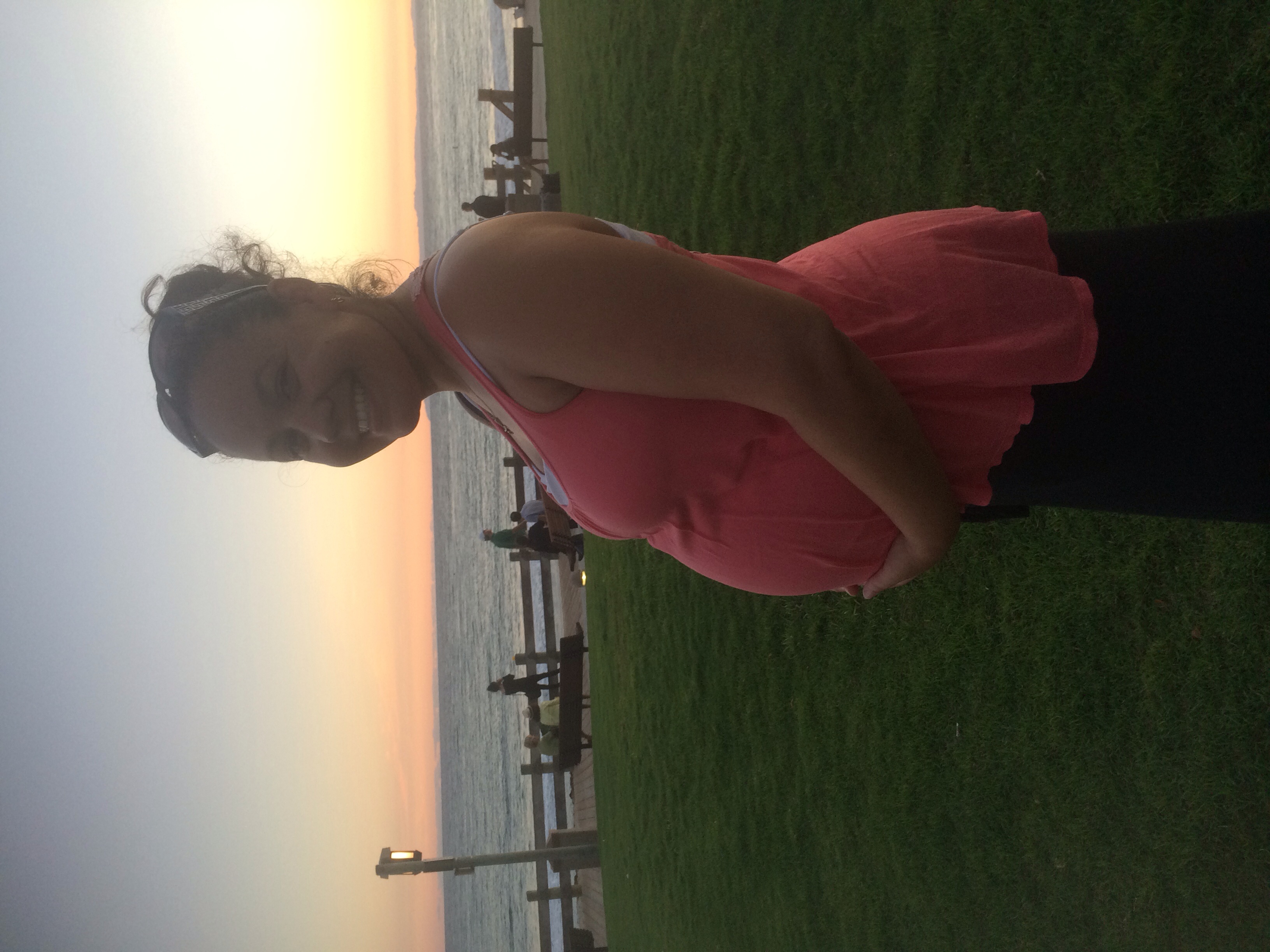 Lol! Thank You!! Weird! It's showing upside down for you? I'm wearing a black tank and blue jeans... But the pix is right side up for me.