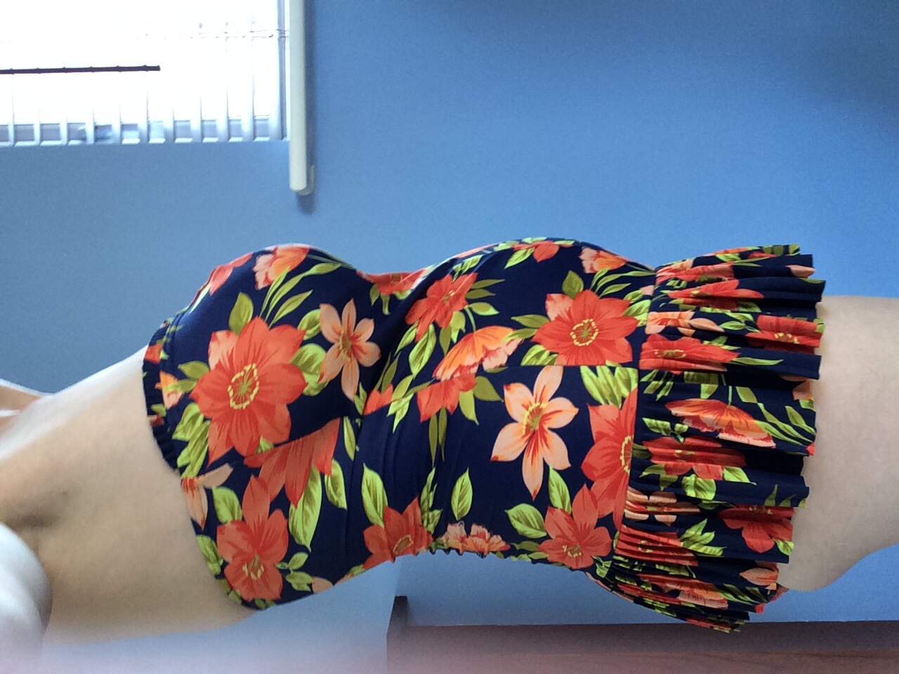 Here is me today. 16+2. It's a beautiful hot day and I've been in the paddling pool with DS and can just about fit into my old swimming costume! It's a bit tight!