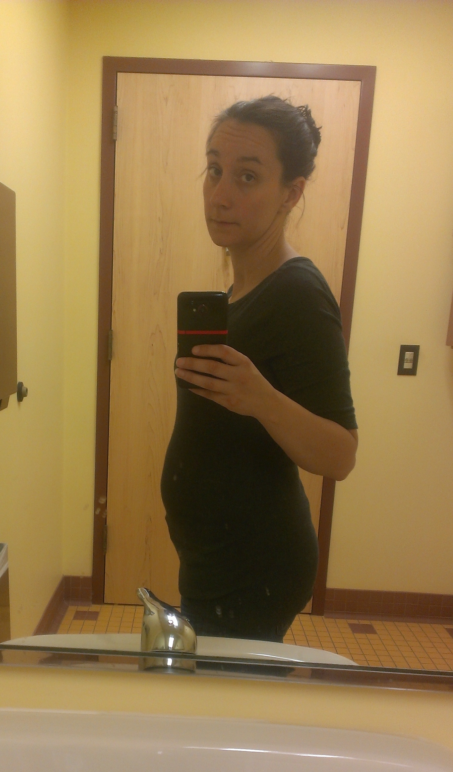 Took a pic with the hubby the other day so I'll post that (I'm snuggled up in bed right now and don't have the motivation to take a new one). You might have to open it to see the actual bump, not the best bump pic. I was particularly showing the bloat in this pic I think, everyday can be so different for my bump lately!