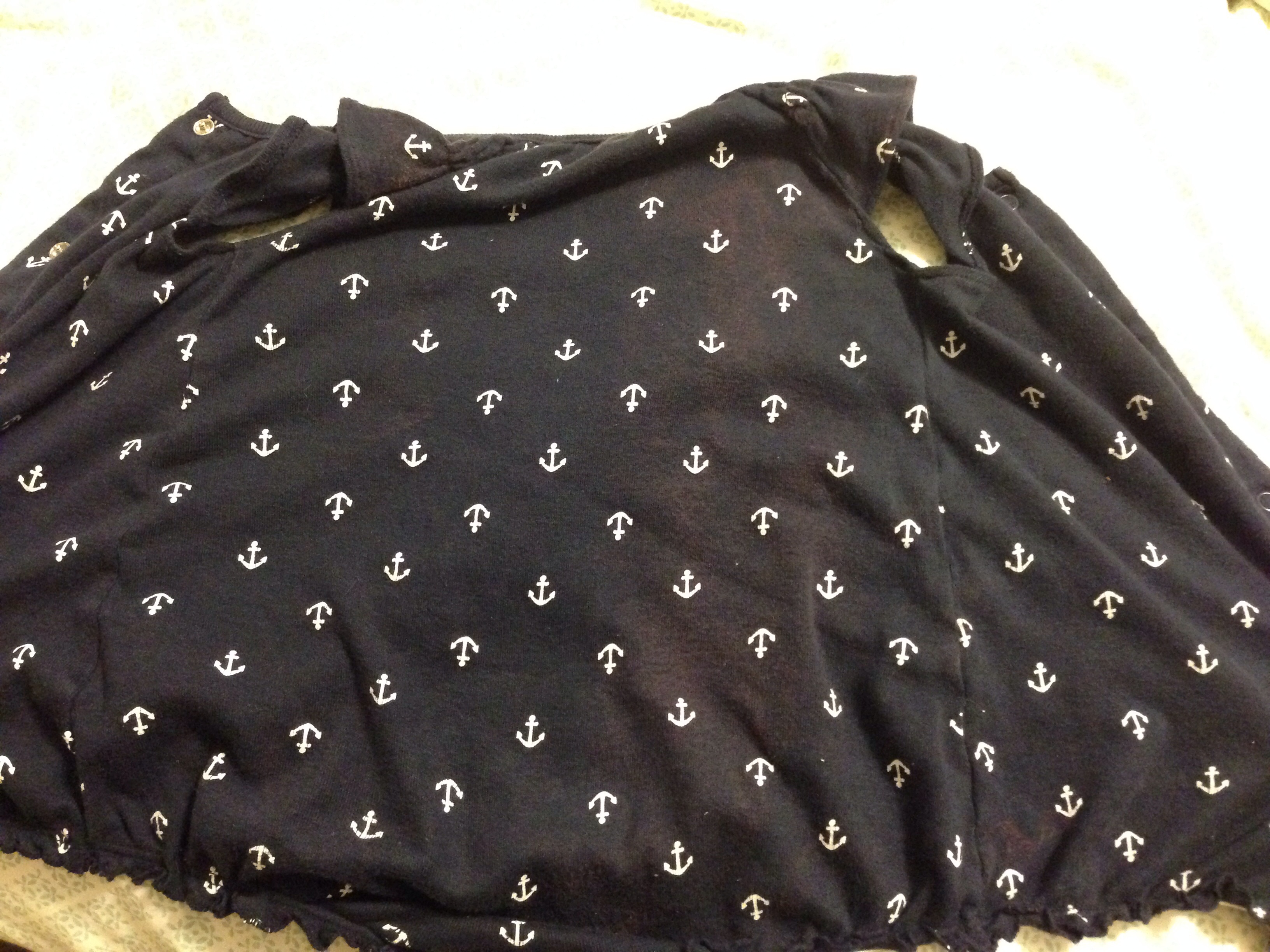 When I picked Emma up from daycare today I noticed her outfit had almost what looks like a bleach mark on it. I never use bleach so I'm almost positive it didn't happen at home.