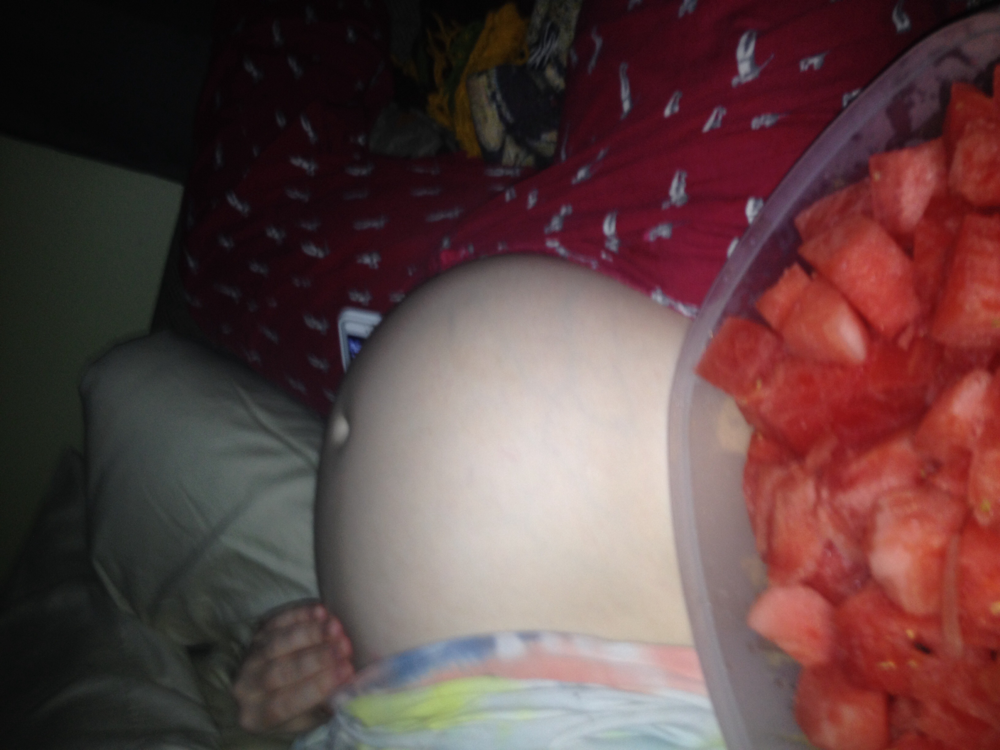FFFC: It's 93 degrees outside. I am laying on the couch eating watermelon, bumping and listening to music in my PJs with my bump out in its full glory. I don't have any intentions of changing clothes. Are there things that I need to do? Yes, but this teacher is having a lazy summer day.
