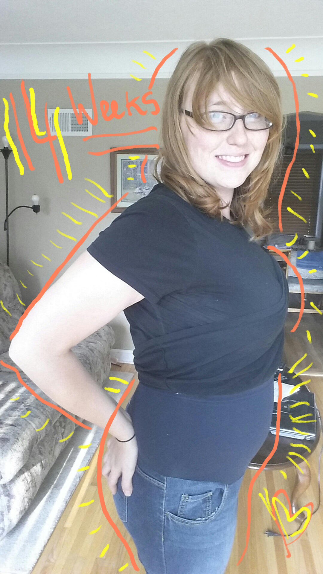 Wedensday confession? Until the bump gets too big, I keep the same shirt so it's easier to compare when I look back at them. Although this week's is flipped, I should be facing the other way... Ooooops. I'll fix that for myself later. :P