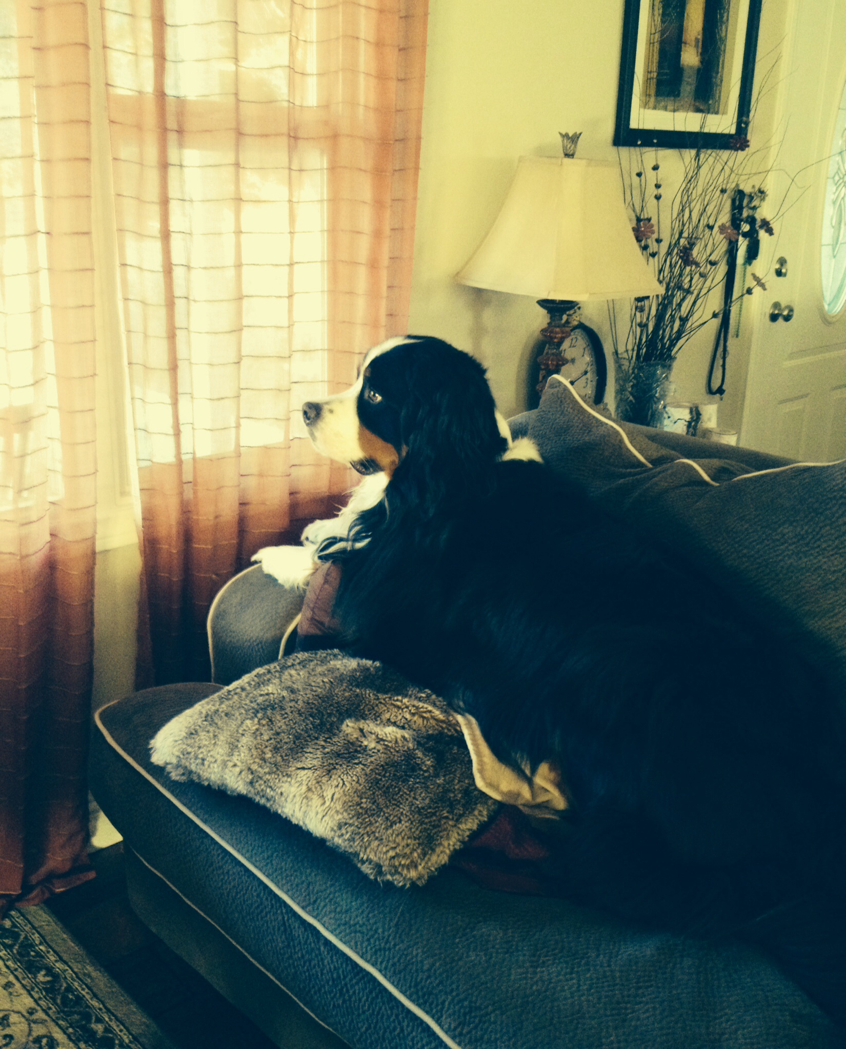 MH left on a guys fishing trip yesterday and Memphis is sitting by the window watching and waiting for his daddy to come home
