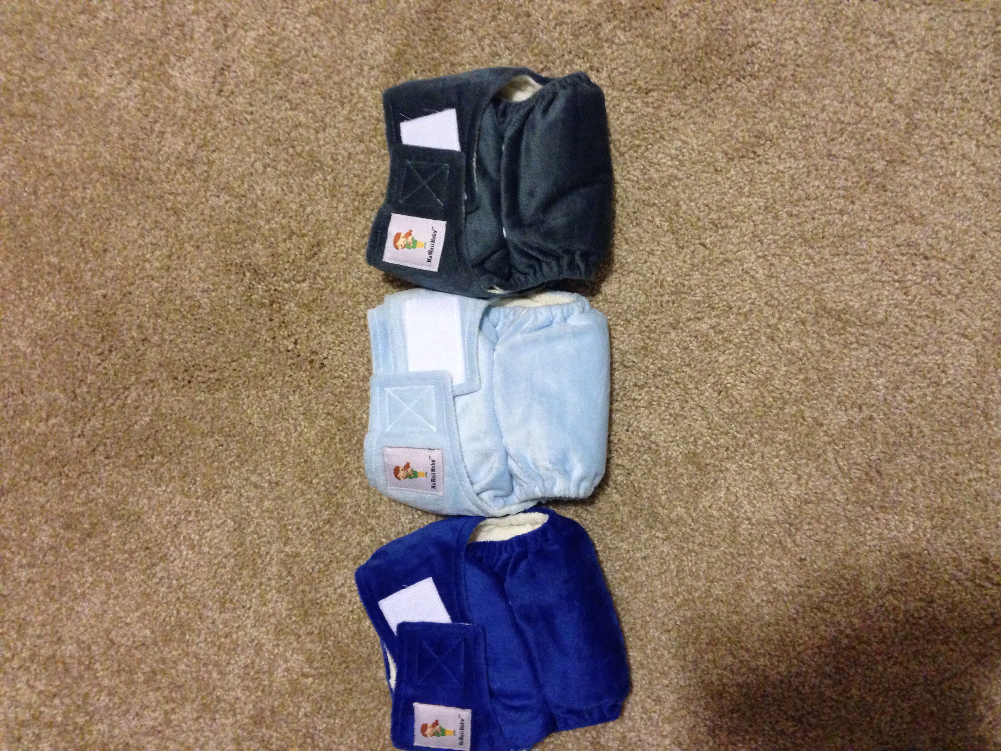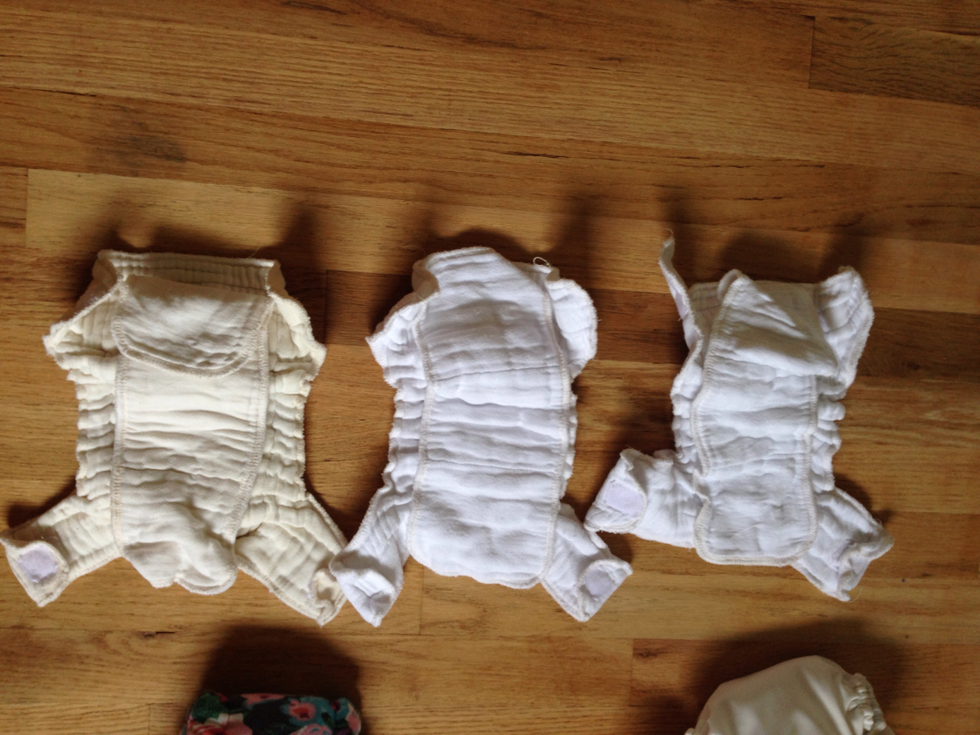 3 size small fitteds with lay-in boosters (from Etsy WAHM adriannaknits, VGUC, aplix and elastic in good shape. No stains or stink)