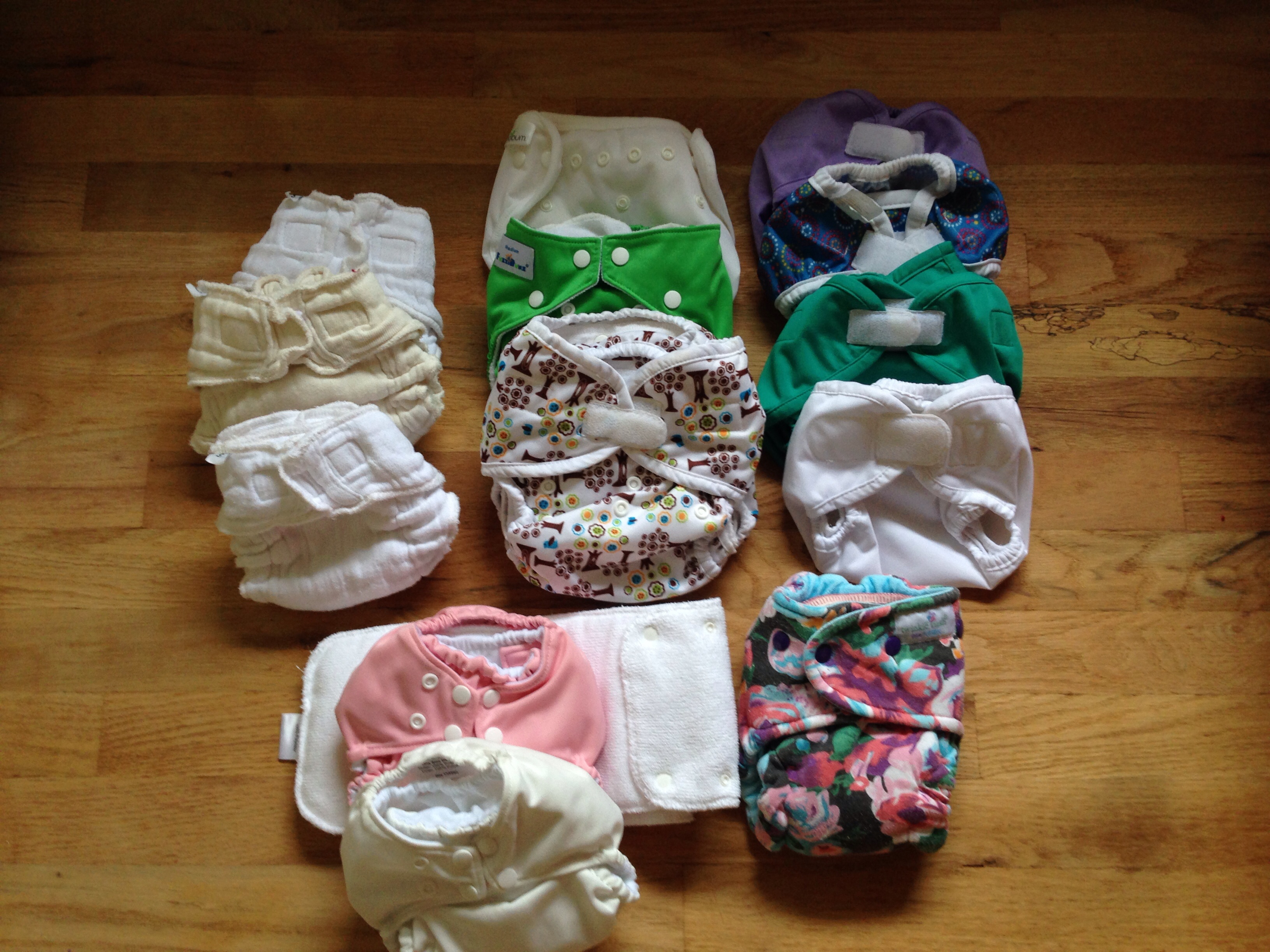 - six gDiapers, size small. 3 green, 3 orange. VGUC (some staining on plastic liner elastics)
