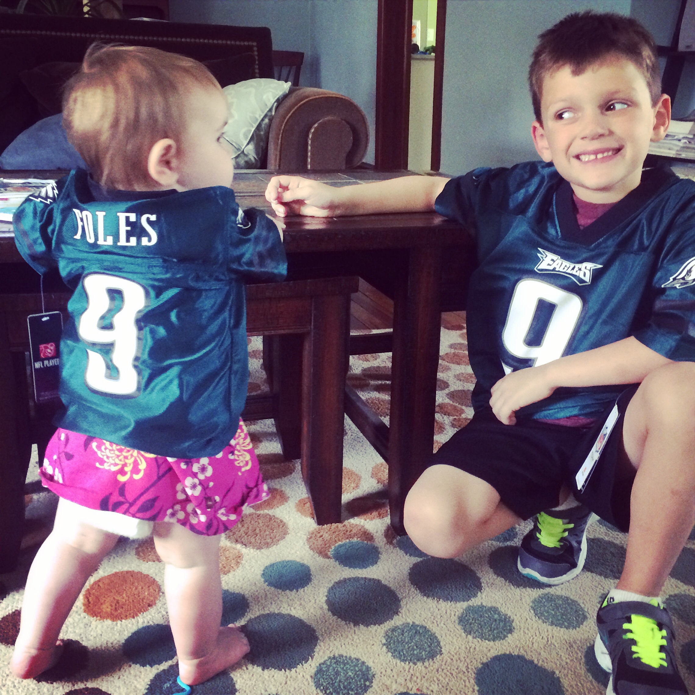 Matching brother-sister jerseys! Welcome back football! (even though it's just preseason)