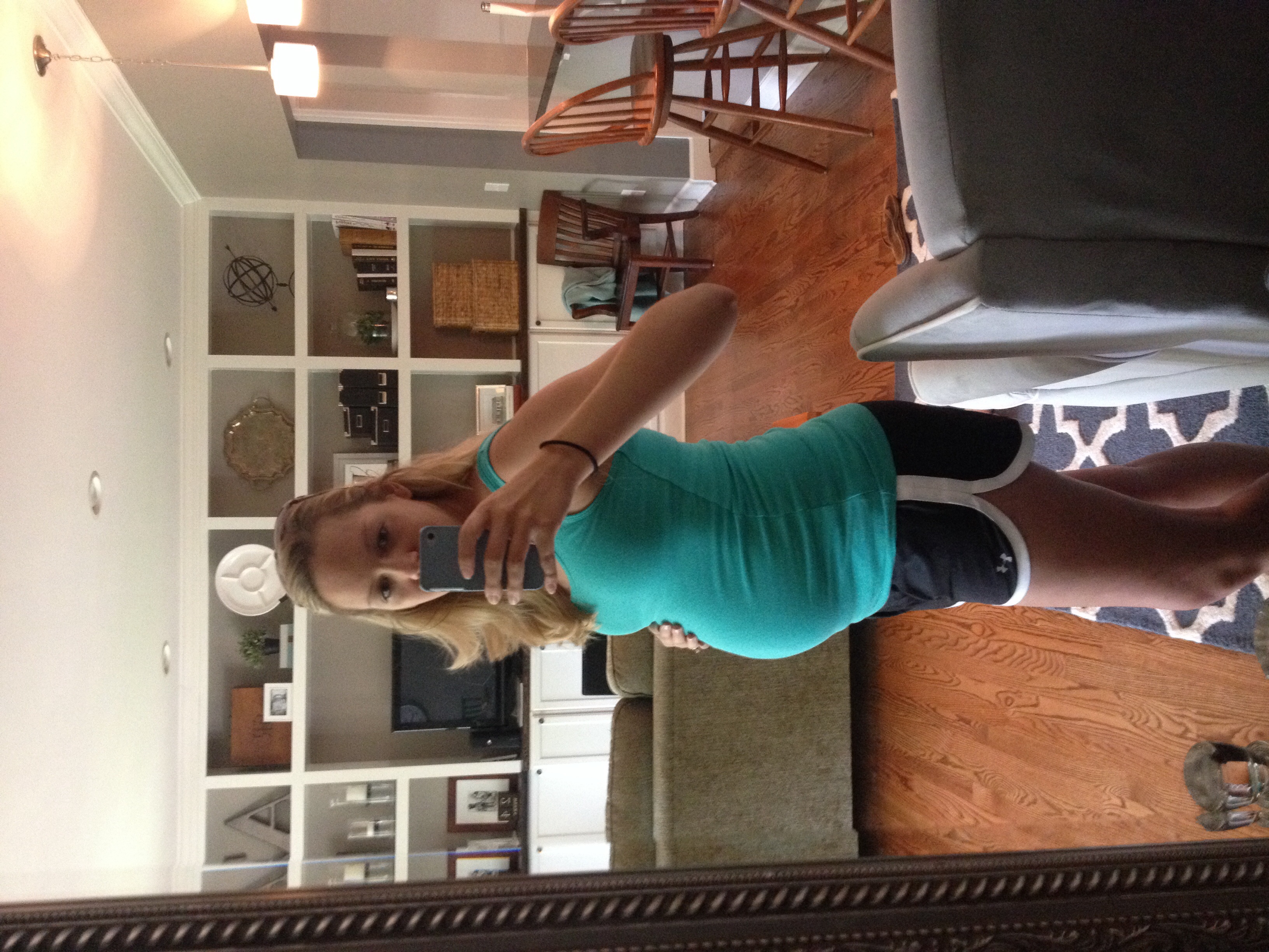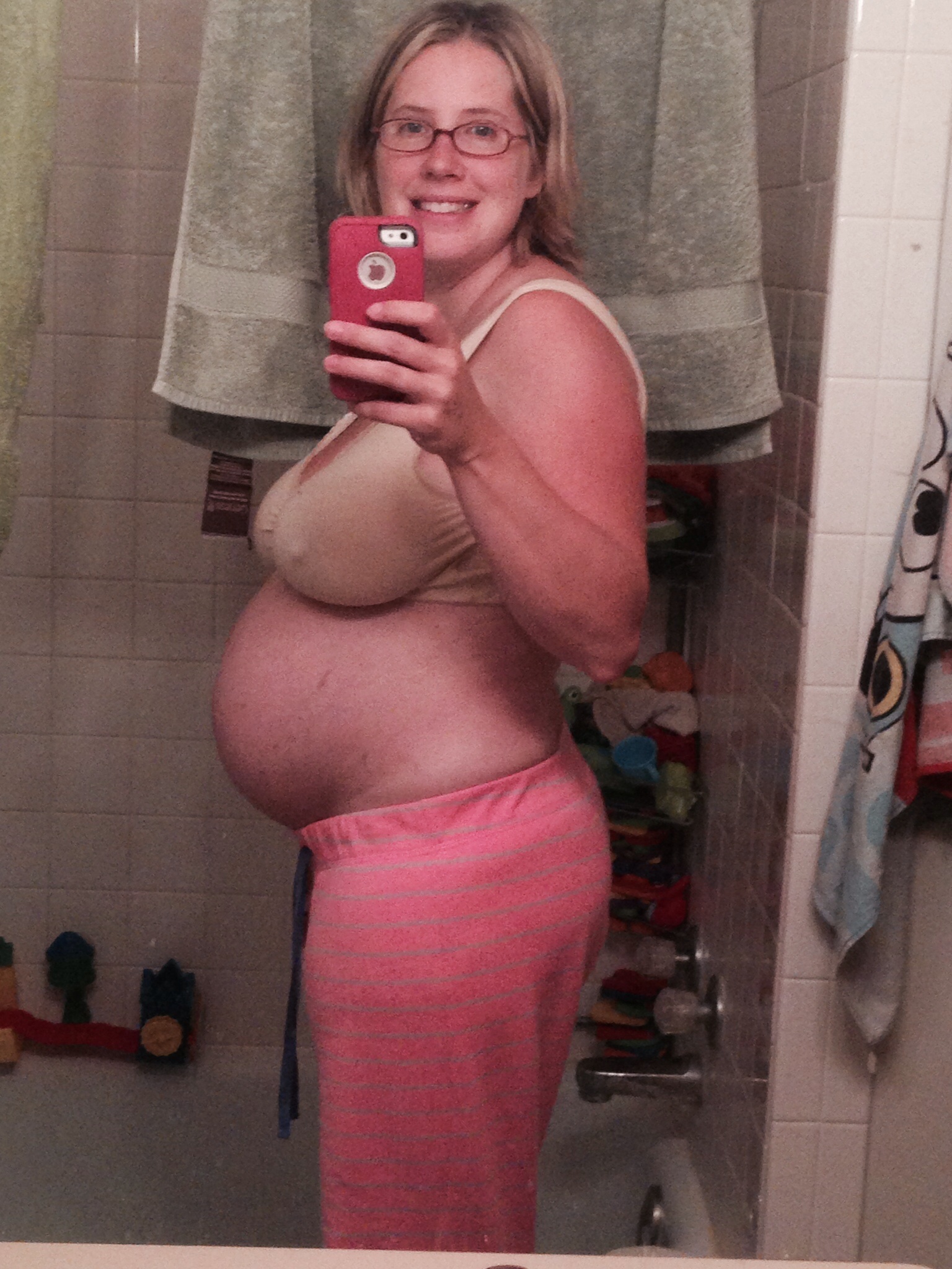 28 weeks, on vacation in South Carolina. With our first ultrasound way back at 6 weeks, we said the baby looked like a turtle, and Ryan started calling the baby TMNT. Since we are having a boy, we're doing a turtle/TMNT lightly themed nursery. So, yep, it's turtle time!