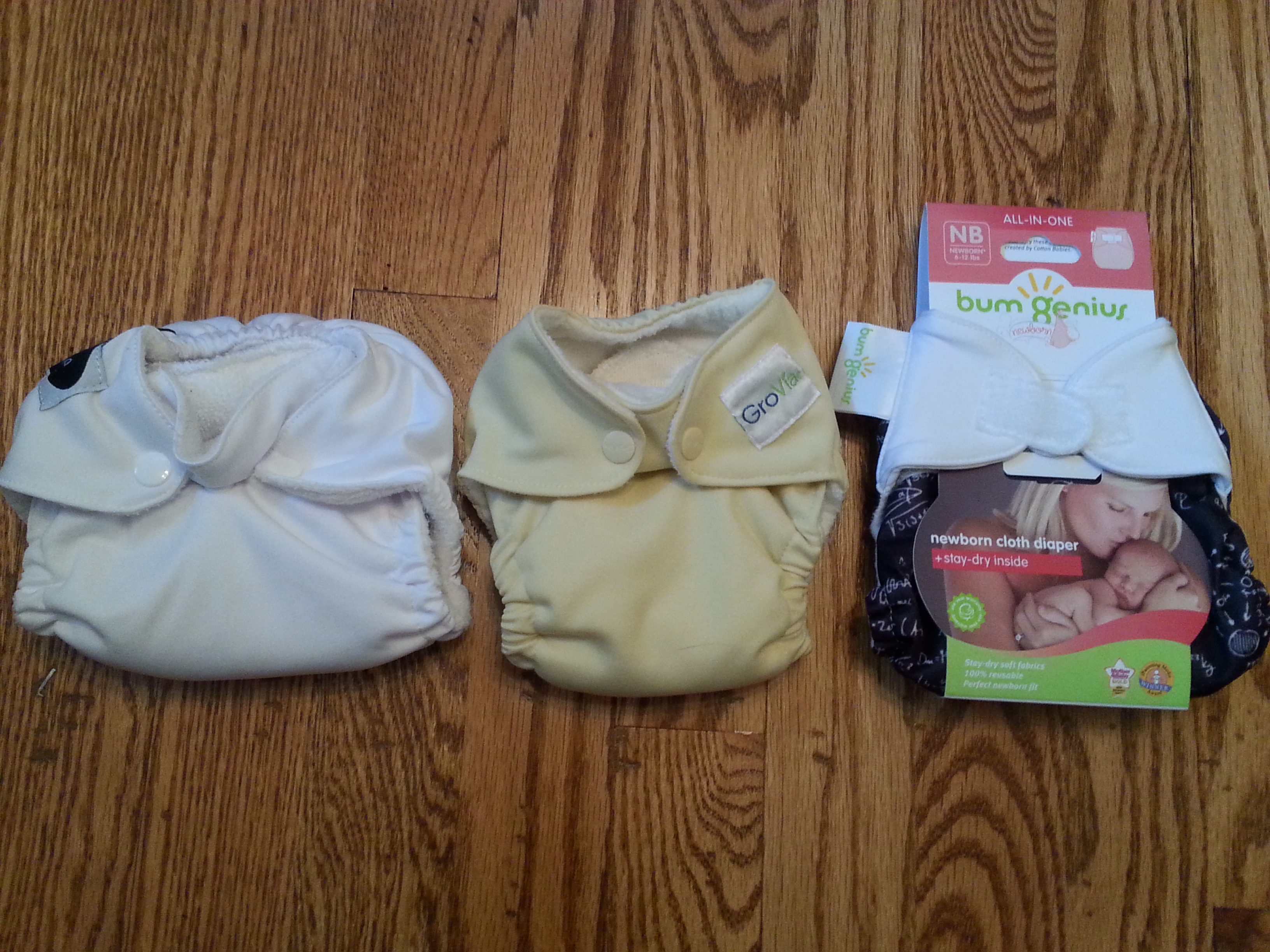 worn-once newborn AIO Imagine in white, and a worn-once newborn AIO