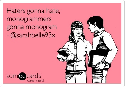 I'm originally from the south, also, and my SIL is all about this monogramming thing. I think it is really dumb. It screams southern pretentiousness to me.