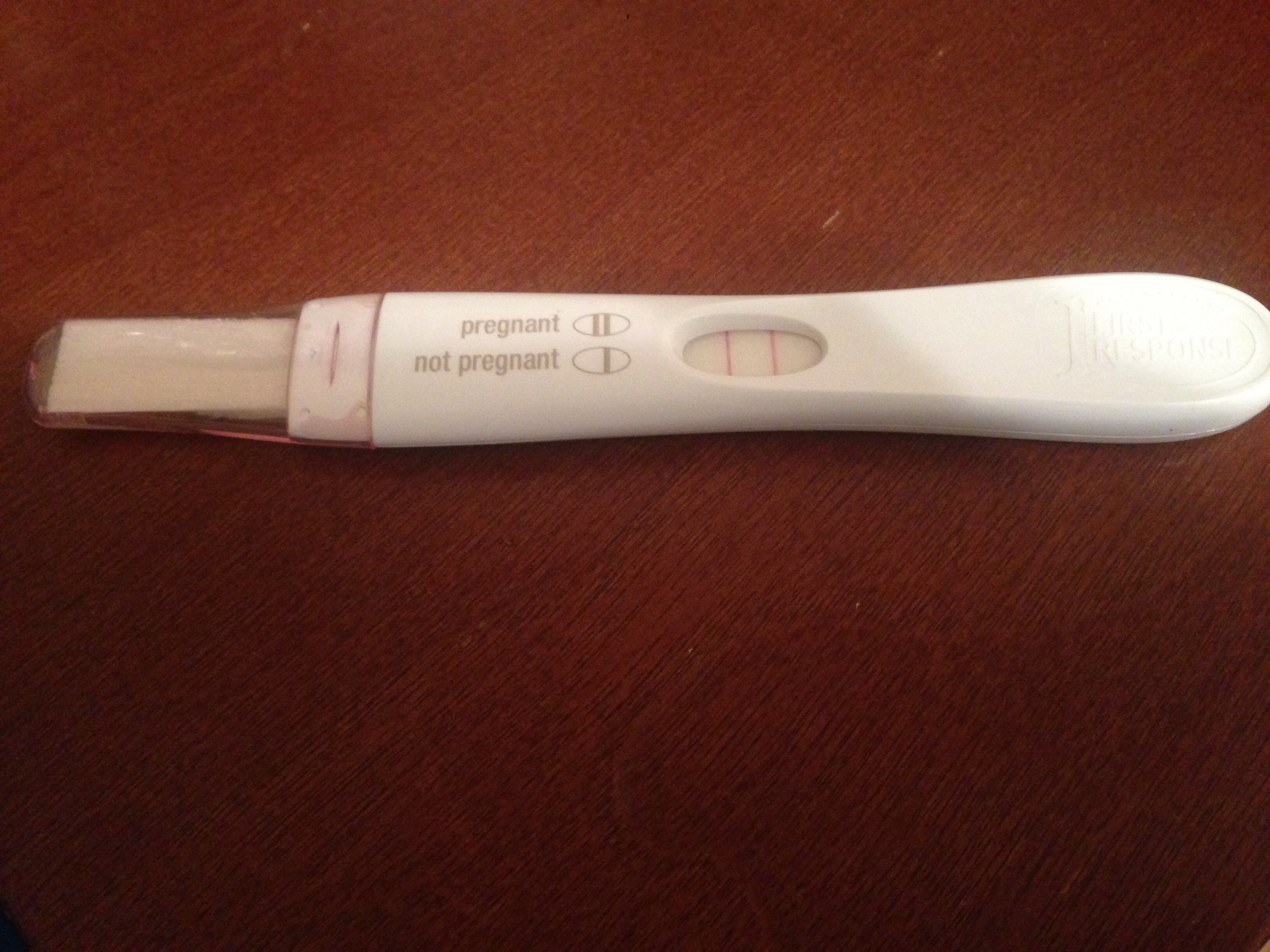 Testing: First Response, as soon as I was done peeing on it, the second line immediately was turning pink! I about fell off the toilet. Btw, that was this morning...I'm a kindergarten teacher, and today was also the first day of school!!! One I'll never forget!! My mind was a crazy, all over the place mess today. Lol