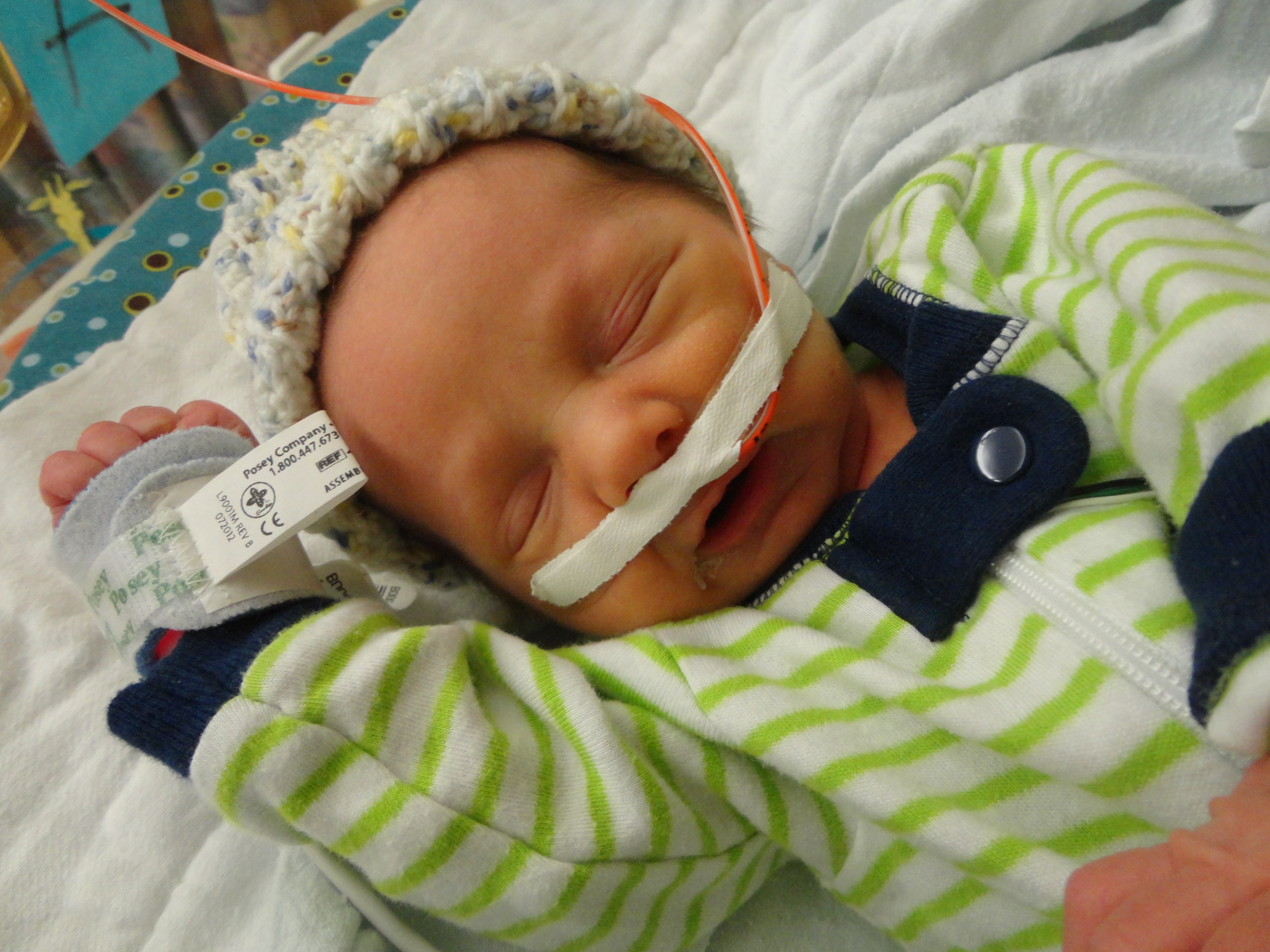 **update** both kiddos are doing great! They are off all IVs, and are able to maintain their own body temps. We are working on feedings, and right now they are both nippling (either breast or bottle) about 1/2 of their feedings. I am able to keep up with them with pumping, and just biding our time until they can go 48 hours without needing a gavage feeding. Thanks for all the congrats and thoughts and prayers! Peter is in the green and white stripes, and Sophia is in the yellow.