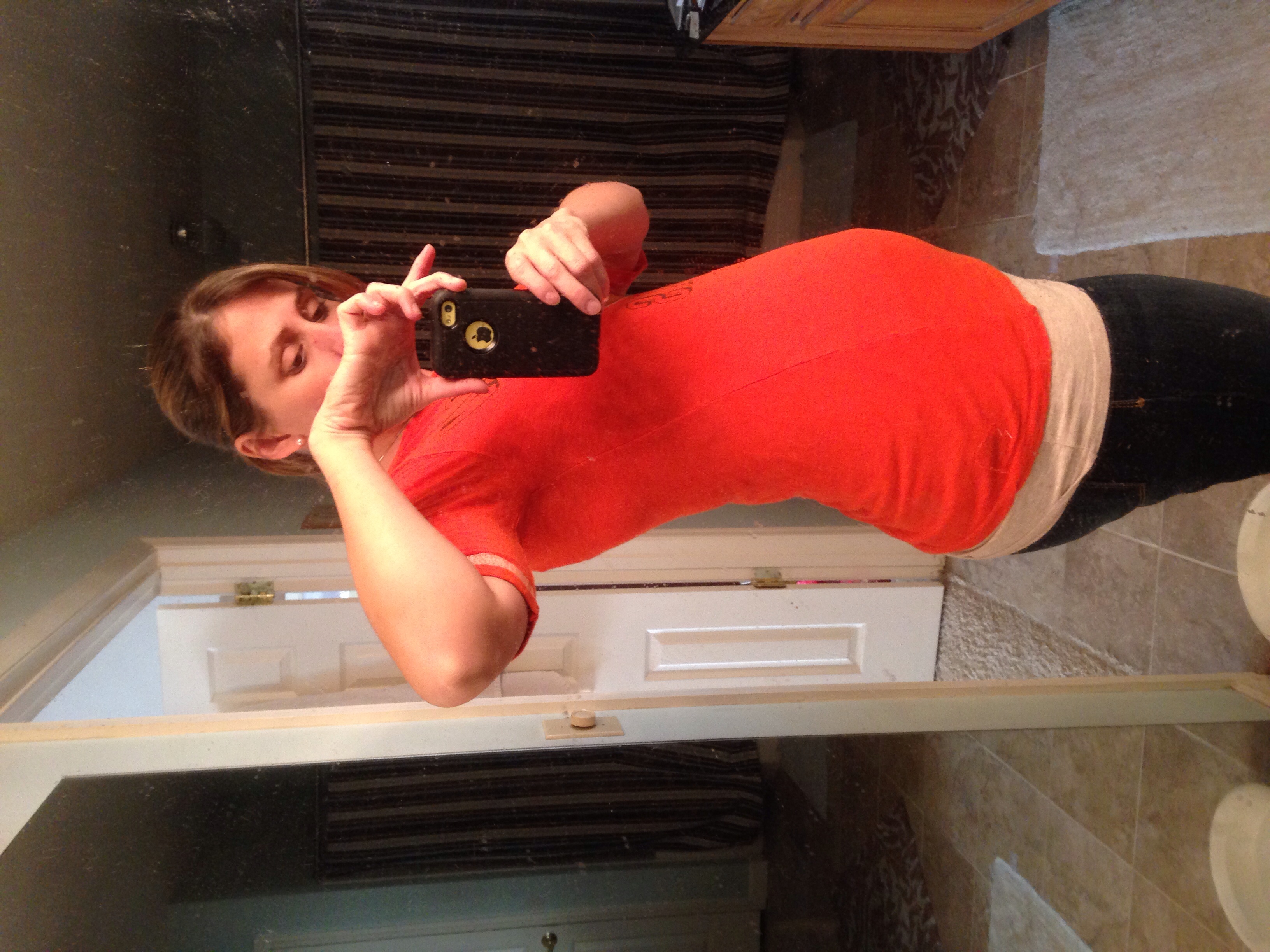Oh, thanks @kefttsc. I had literally just gotten home from buying it when I had H take this pic! That's why you can totally see my bra through it! I promise I'll wear a tank under it next time! I got it at Burlington coat factory, for $7.99!!! I got several cute shirts there yesterday from $5.99-$9.99! I'm so glad I decided to go there and see what they had.